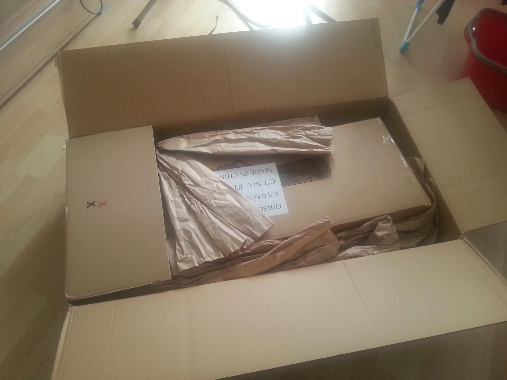 @saxof: Rein äußerlich war nichts, die Gitarre war auch vom Musicstore vernünftig eingepackt (ist ja ihr täglich Brot). Die Gitarre war zudem in ihrem original Koffer! Wer Gitarrenkoffer kennt, weiß, dass die Kopfplatte oben frei liegt, während unten (wo man Gurt etc verstecken kann) der Hals aufliegt...ich hoffe ihr versteht was ich meine.