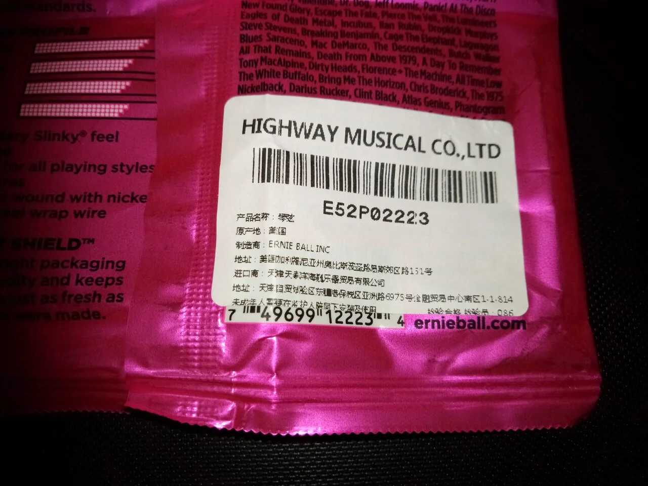 Als Beifang zwei Satz Ernie Ball Super Slinky 2223 mit bestellt. Mir ist dann eher beiläufig aufgefallen, dass da auf der Rückseite ein Aufkleber mit offensichtlich chinesischen Schriftzeichen klebt. Da stellt sich jetzt natürlich die Frage warum das so sein könnte. Stand jetzt, scheint die Qualität von der Verpackung bis zu den Saiten auf Ernie Niveau zu sein. Klar, die sind jetzt recht frisch drauf aber bis jetzt stimmstabil und auch haptisch nicht zu beanstanden. Weiß da jemand eine befriedigende Erklärung oder steht da der Verdacht im Raum ggf. Opfer von Produktpiraten geworden zu sein.