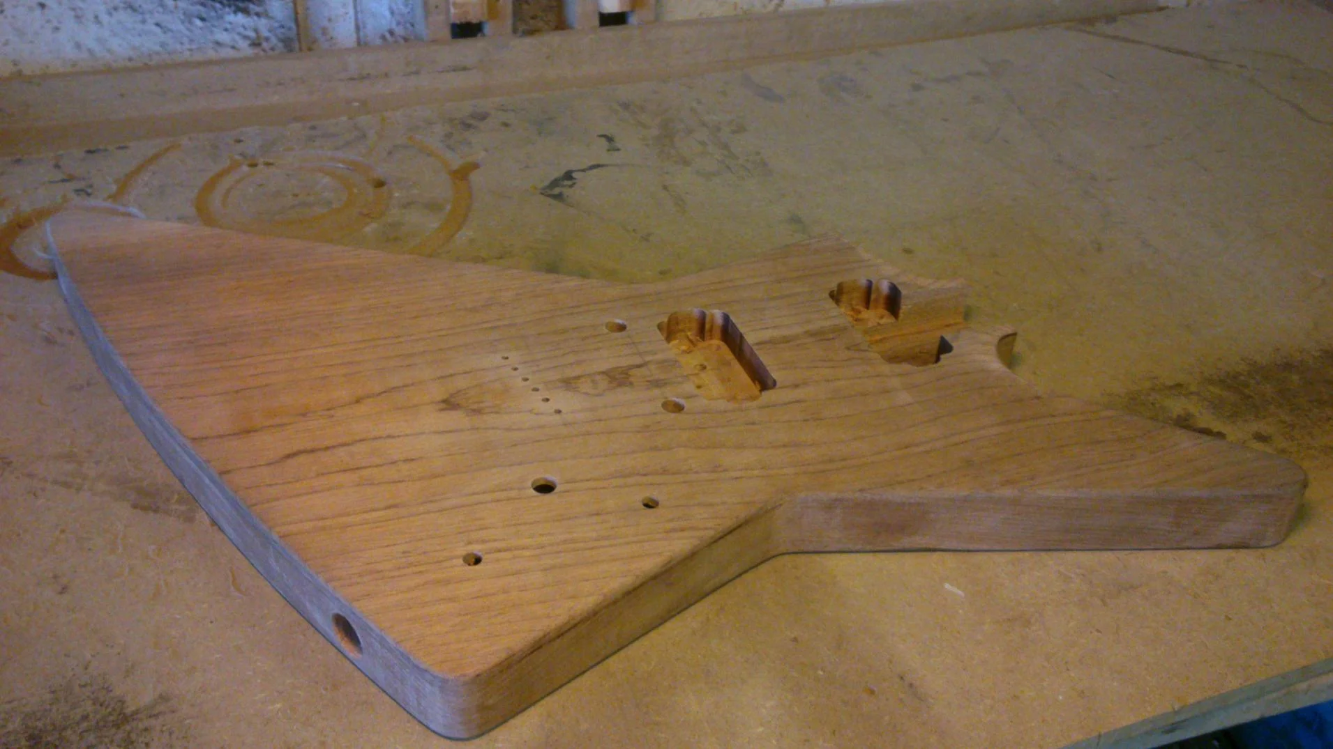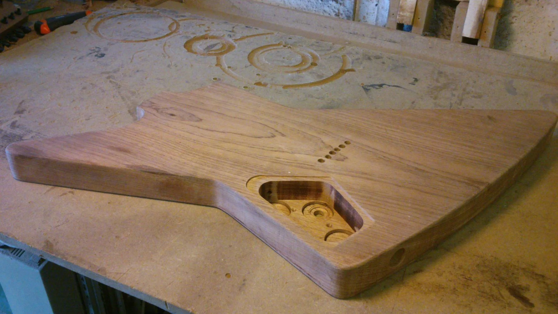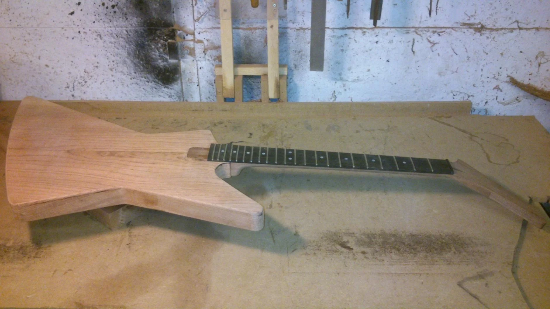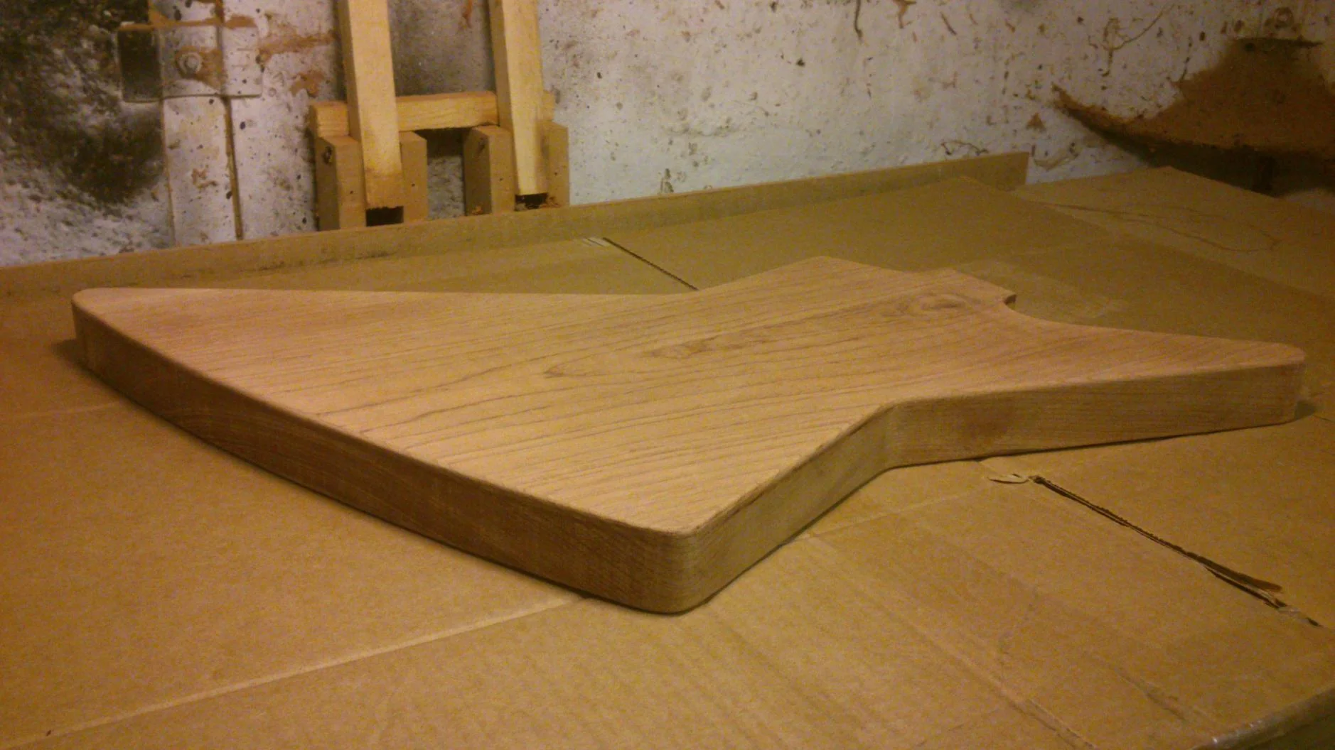 Um die Sache möglichst einfach zu halten, habe ich nach einer Gitarrenform gesucht, die ohne viel Schnickschnack wie Bindings und gewölbte Decke auskommt. Also habe ich mir für eine Explorer entschieden.