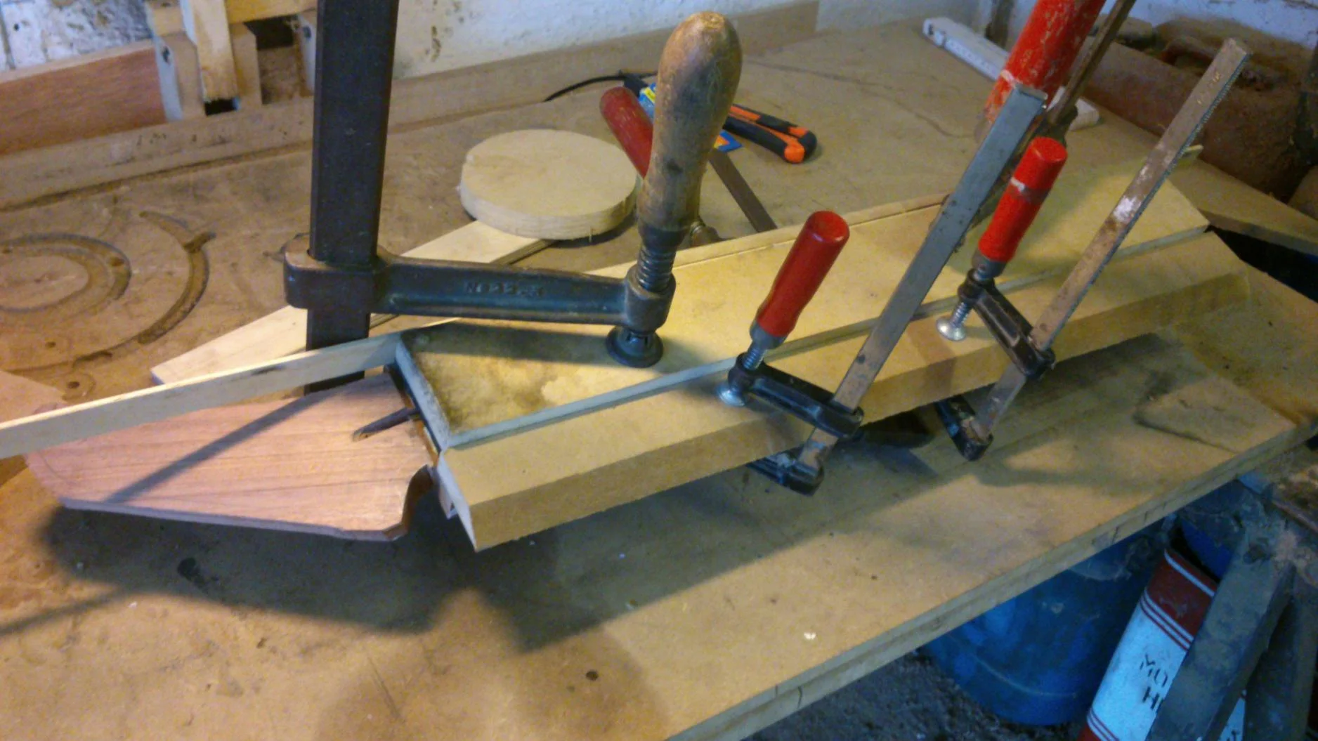 Bewaffnet mit dem wirklich tollen Koch-Buch und allem an Werkzeug was ich mir von Freunden und Verwandten leihen konnte habe ich Zunächst Frässchablonen aus 8mm Multiplex ausgesägt: