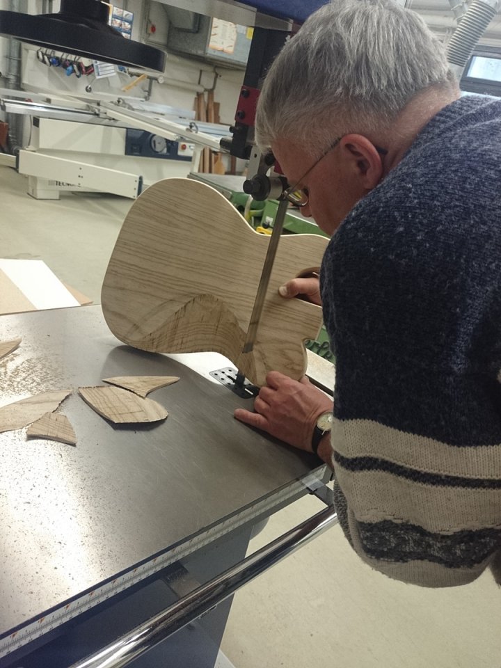 Leider hab ich keinen Zugriff mehr auf ne Werkstatt und ordentliche Werkzeuge, deswegen ist jetzt etwas improvisieren angesagt. Ich werde versuchen die Löcher für den Pickup und das E-fach mit nem Stechbeitel zu Formen. Von der Idee eines Bindings hab ich mich verabschiedet und deshalb die Kanten einfach abgerundet. Bohrmaschine fürs Löcher bohren ist vorhanden, ansonsten noch ein Schleifgerät, ein Lötkolben und Basic-Werkzeug. Falls es nichts werden sollte, kommt sie einfach als schicke Deko an die Wand, also da mach ich mir keinen Stress. Aber natürlich würde ich mich freuen, wenn die Gitarre am Ende auch noch Spielbar ist.