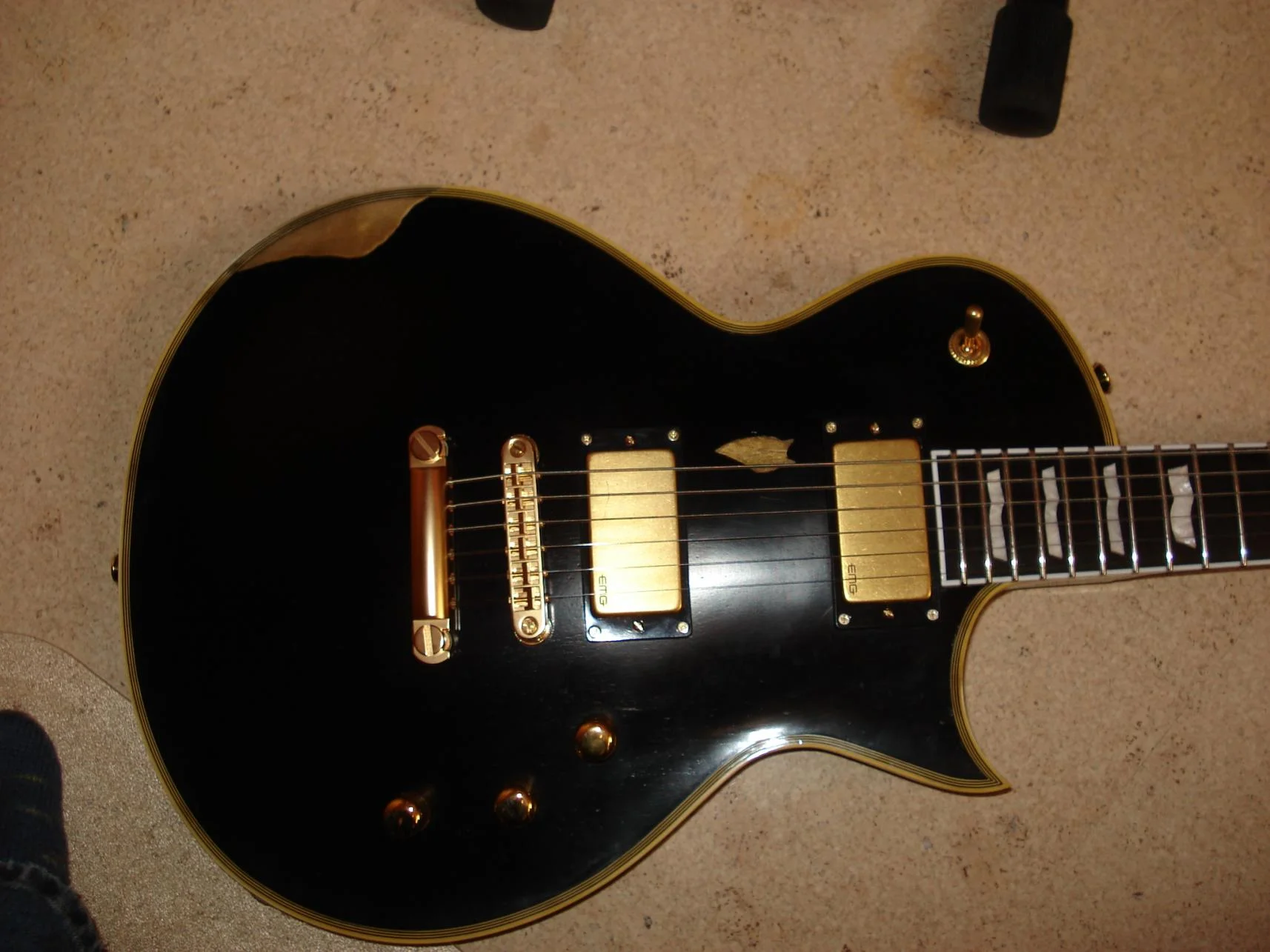 You also get the same distressed finish that gives the guitar a look and feel like itʼs been worked in over years of playing. And, like we may have mentioned earlier, it looks even cooler with a bad-ass black finish. Check out the new black Truckster at your ESP/LTD dealer in Fall 2009!
