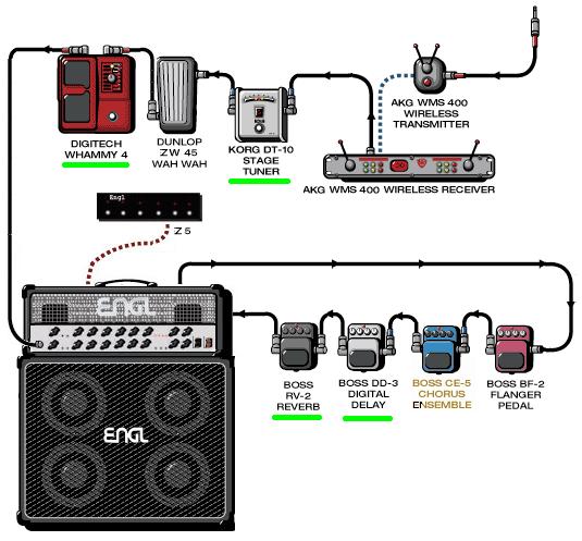 So hier mal meins. auch wenn die grün markierten noch nicht vorhanden sind. Als nächstes kommt der korg dt-10. bei dem delay und reverb steht noch nicht fest was es wird. hab deshalb standard mäßig einfach boss genohmen.