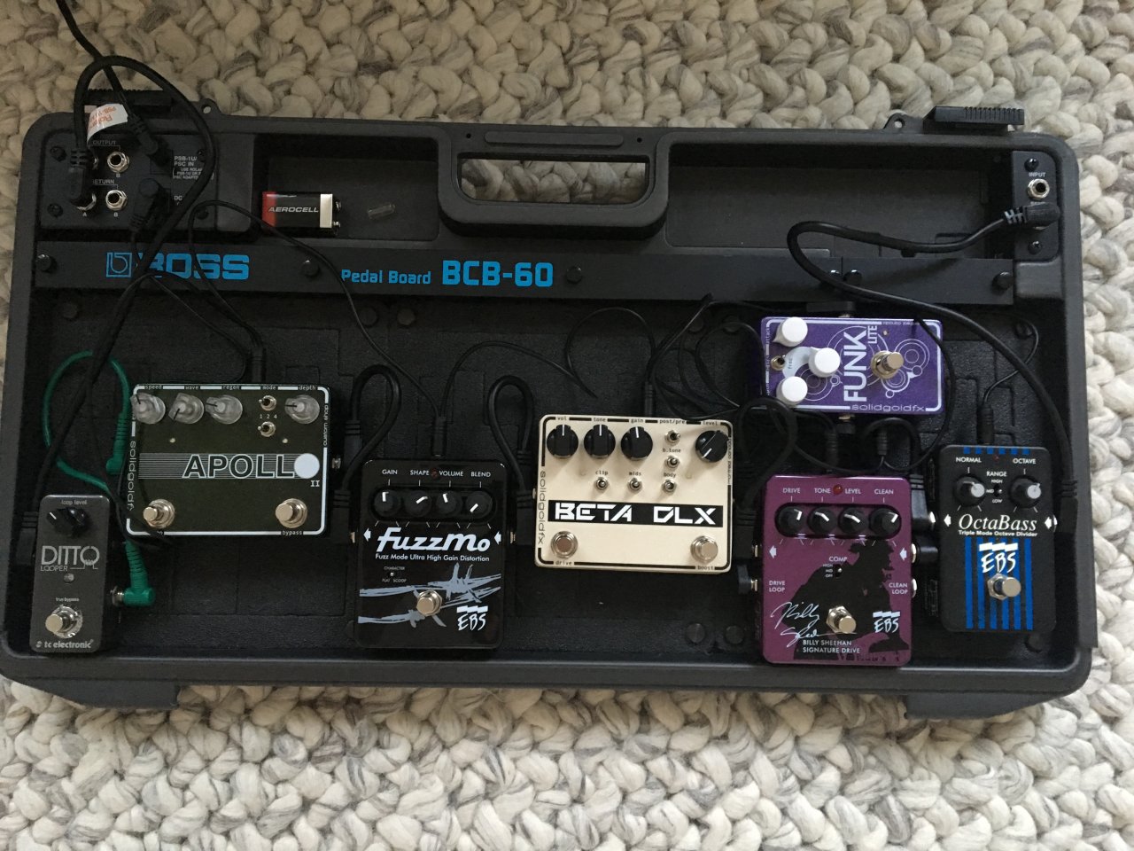 Mit dem Octaver bin ich aber noch nicht ganz zufrieden. Da werde ich noch andere ausprobieren, vielleicht Aguilar und MXR. Billy Sheehan und Fuzzmo sind genial, Apollo und Beta DLX ebenfalls. Das Funk Lite hat sehr starke Dynamikspitzen, die der Compressor im Billy Sheehan zügeln muss.