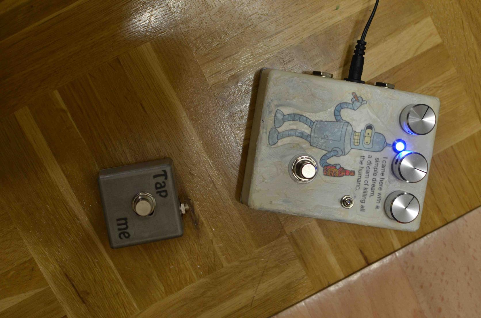 zu sehen: ein tap tempo für boss dd-5 und ein vox tonebender von uk-electronic.