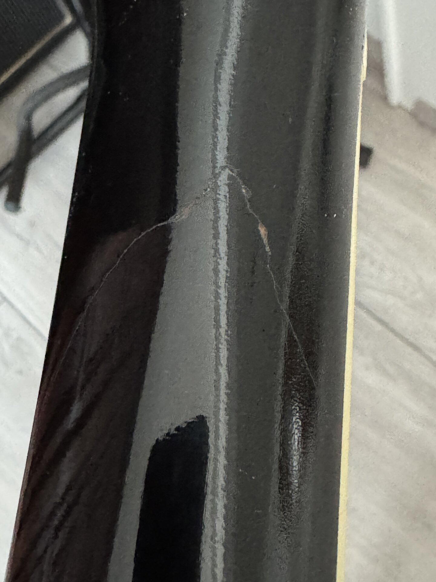 Kann jemand hier im Board eindeutig sagen, um was es sich hier handelt? Es könnte ja von „Lackriss“ bis „reparierter Halsbruch“ bis „unreparierter Halsbruch“ alles sein theoretisch.