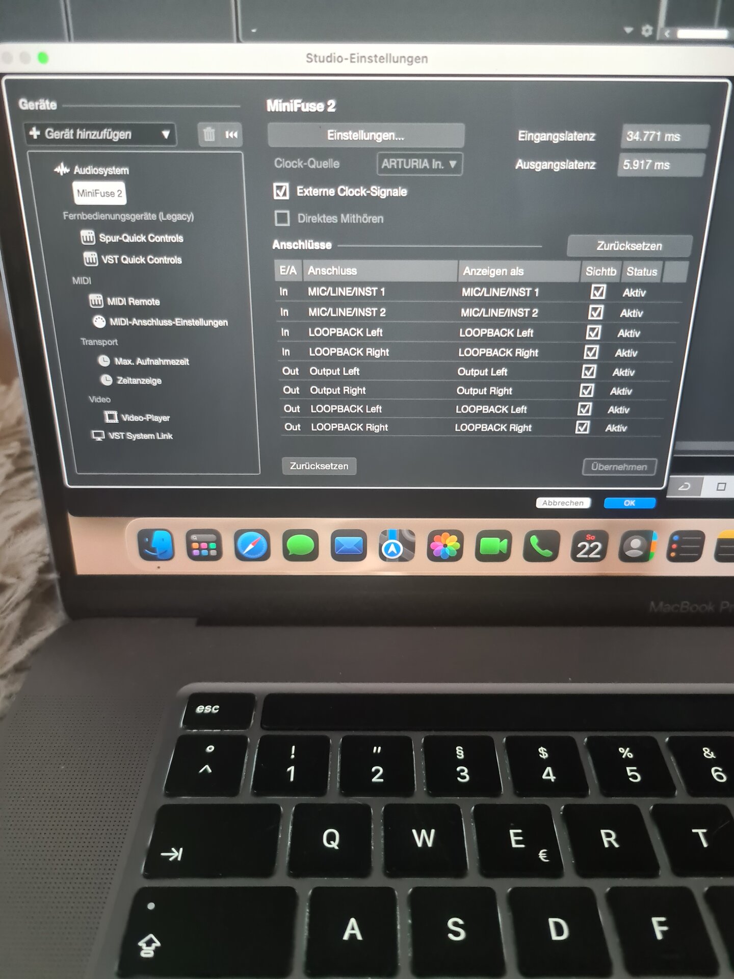 Die Eingangslatenz ist extrem hoch, obwohl Einganglatenz normal ist. Bei 512 Samples siehe Bilder.