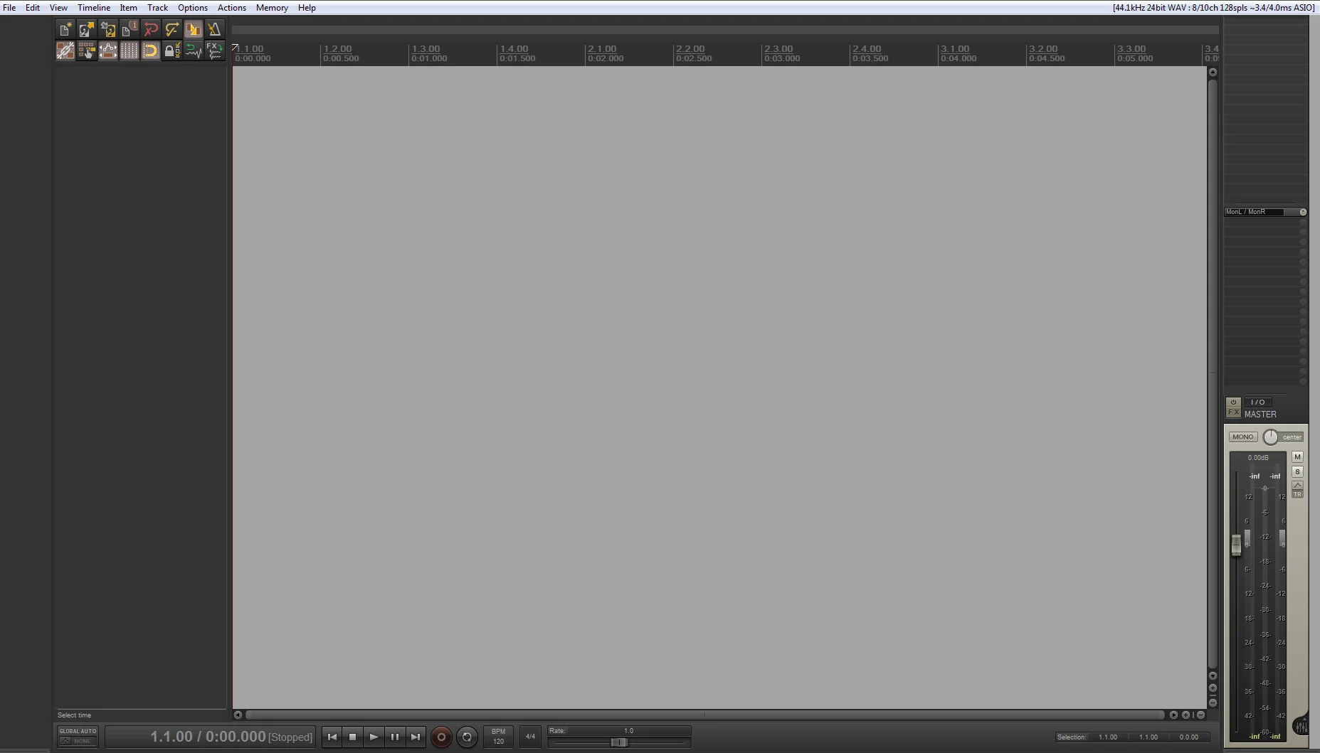hab auf meinem neuen Rechner Reaper installiert und die Einstellungen vom alten Rechner exportiert und hier importiert. Der alte war ein Laptop mit einer Auflösung von 1440x900 oder so. Jetzt hab ich einen 1080p-Monitor am neuen PC dran. Ich wollte vor allem meine gespeicherten Screensets übernehmen, aber wenn ich Reaper starte, sieht's erstmal so aus: