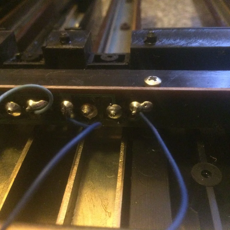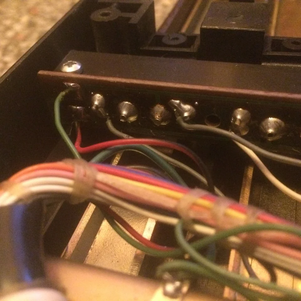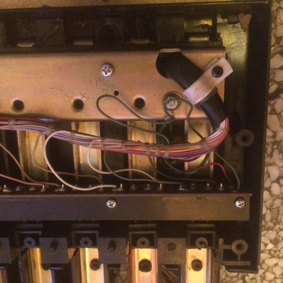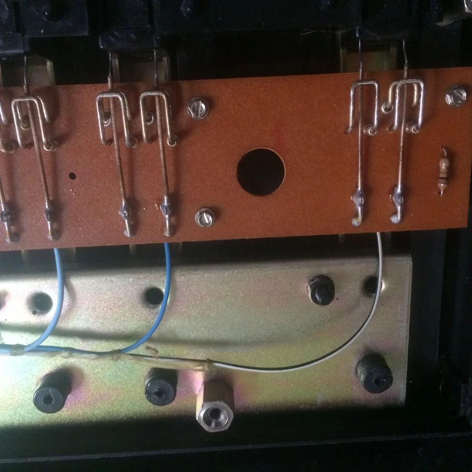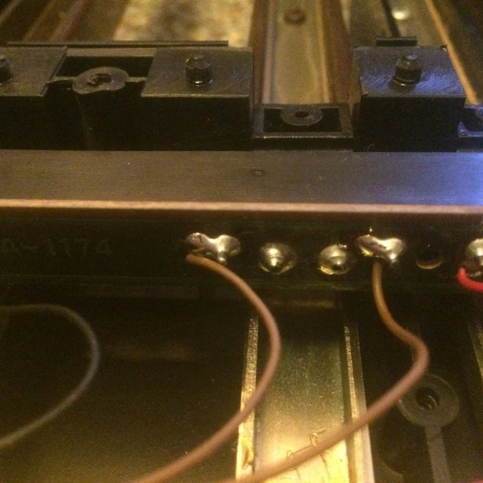 Das Pedal ist aus einer alten Farfisa Heimorgel und die Kontakte kommen in 2 Kabelbäumen heraus. Auf jedem Kabelbaum führen je 2 Kabel zu zwei Lötstellen, womit, ich vermute, ein einfacher Schalterkontakt hergestellt wird.