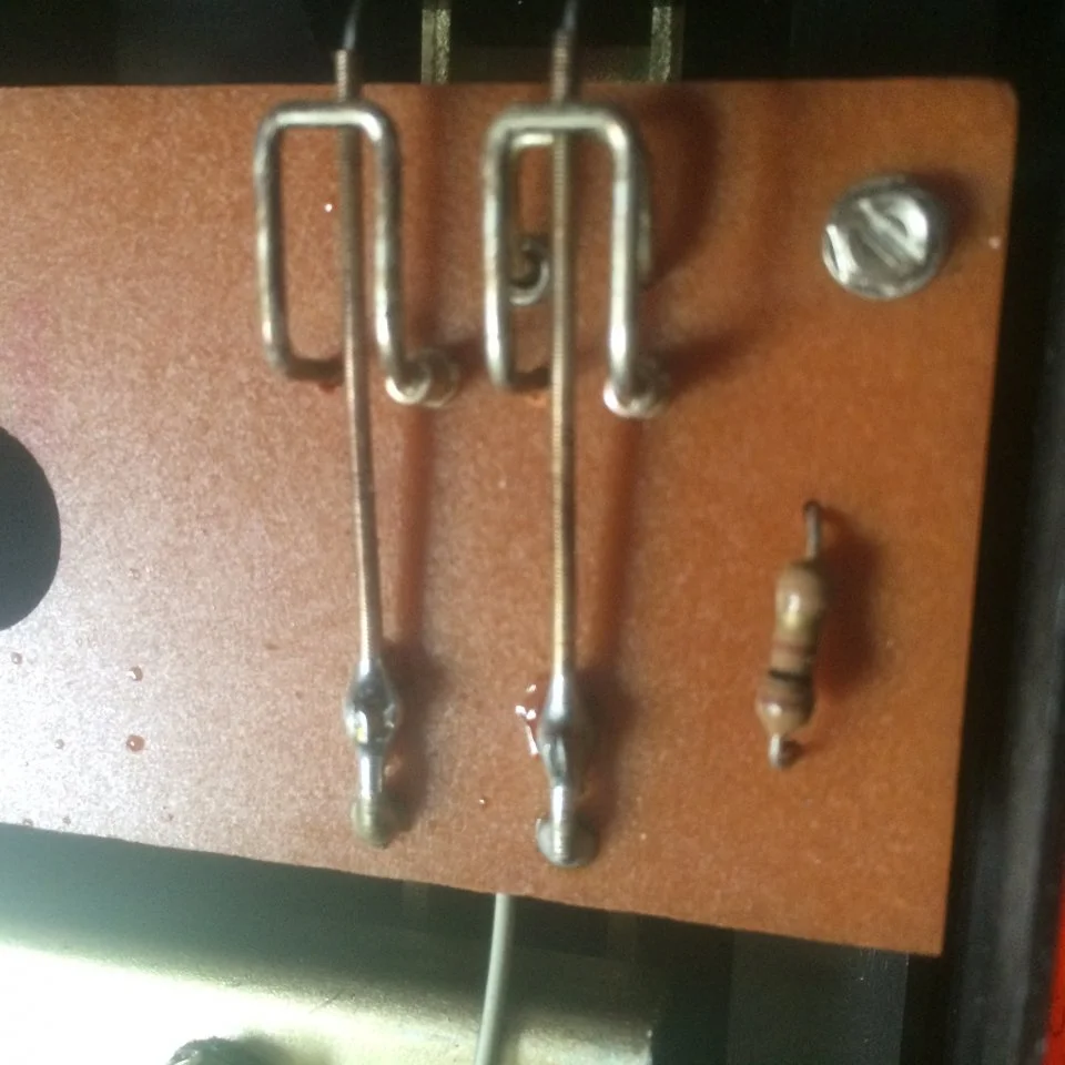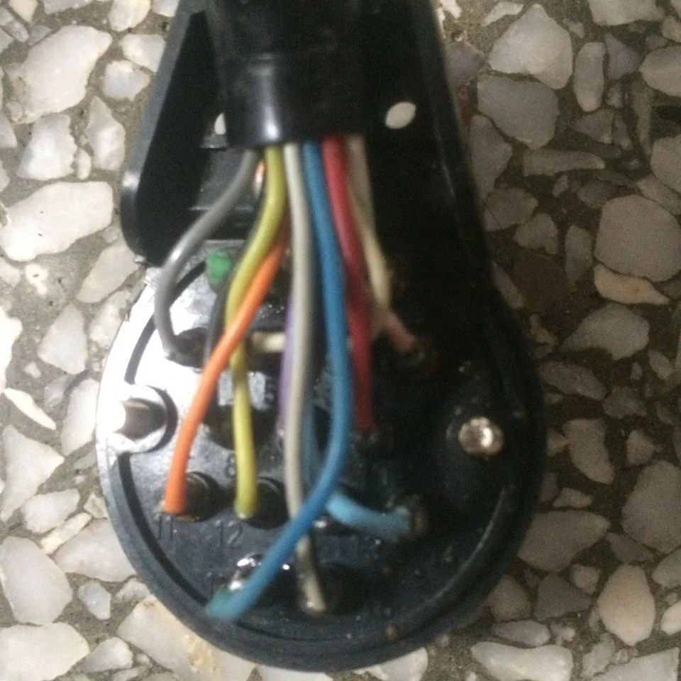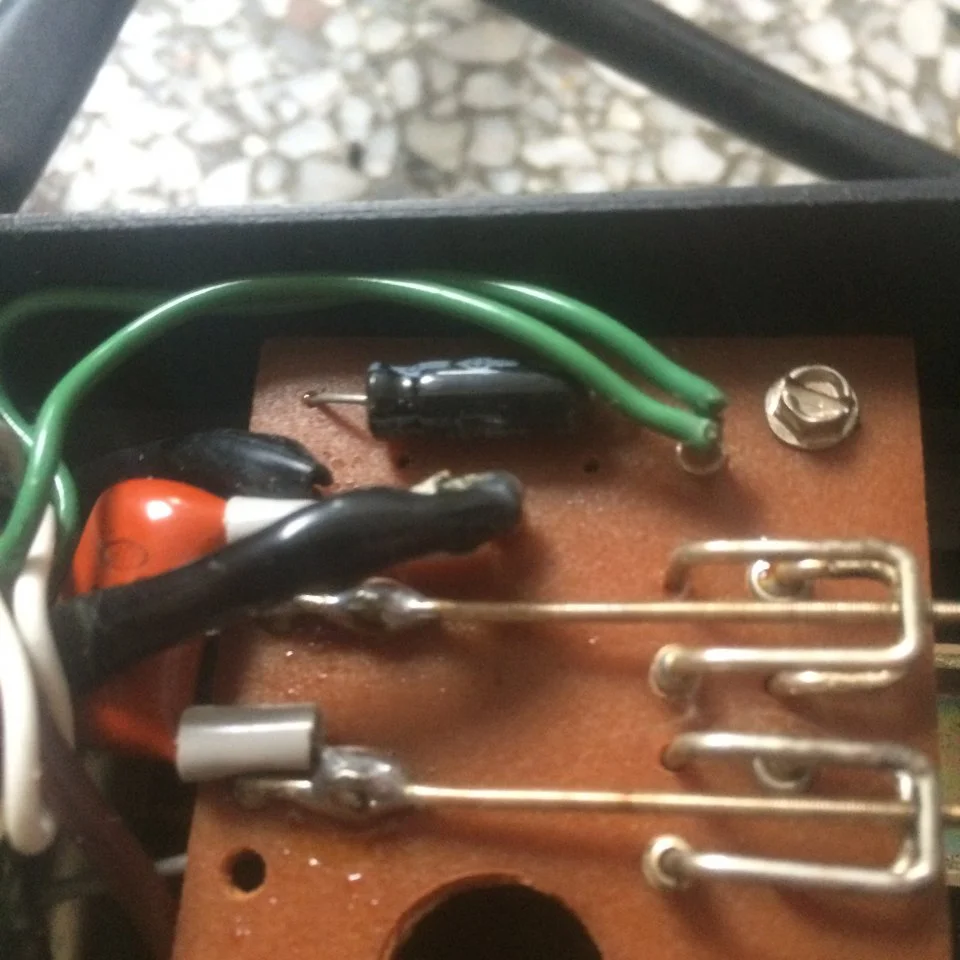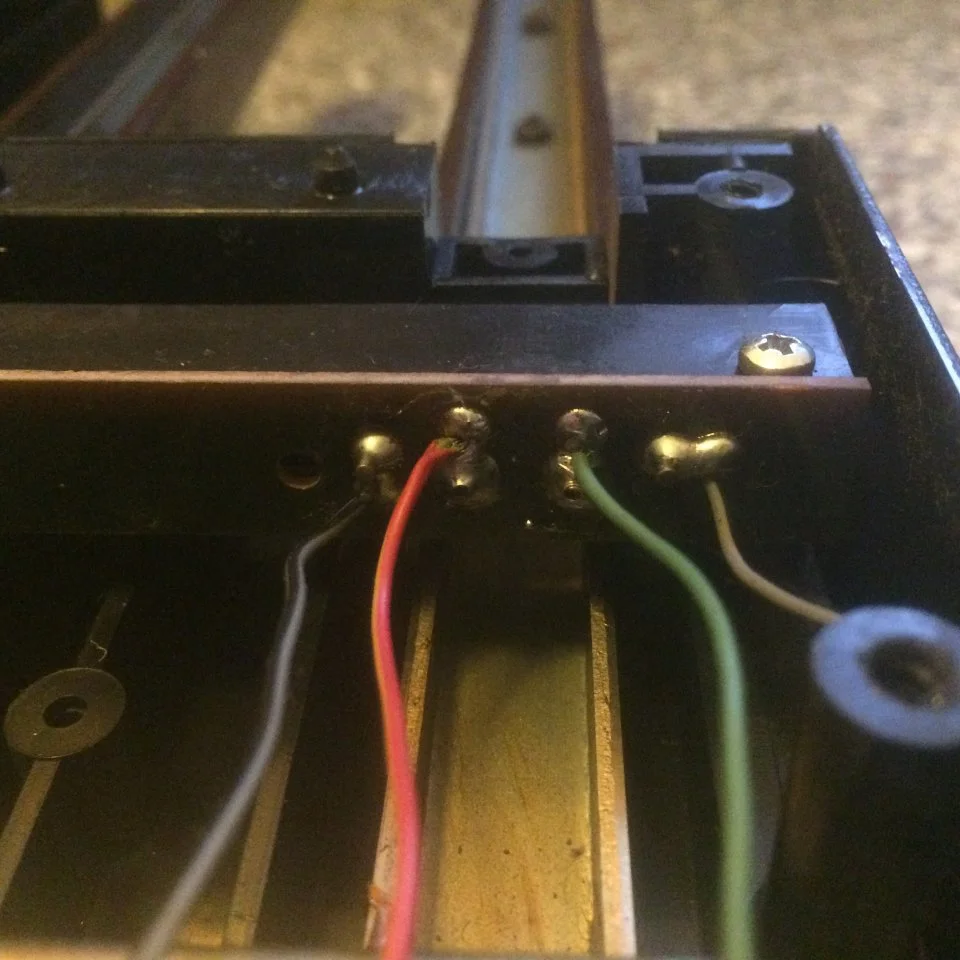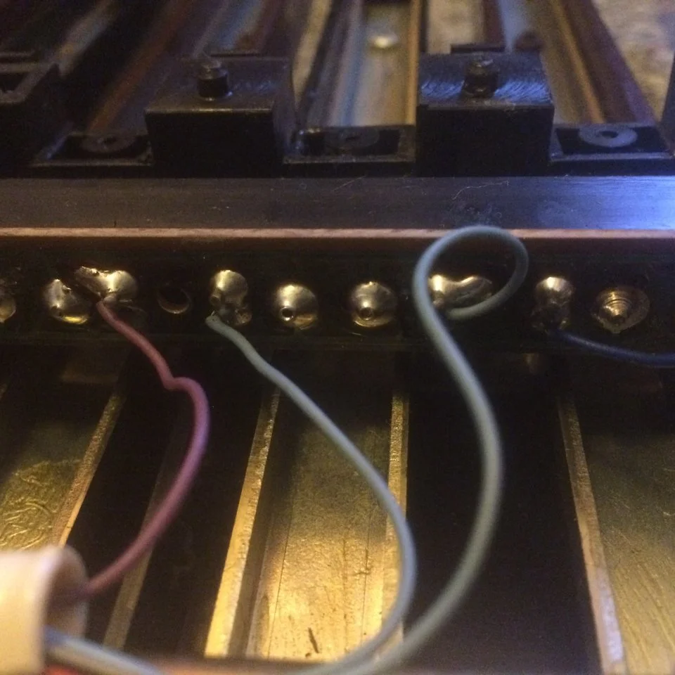 Das Pedal ist aus einer alten Farfisa Heimorgel und die Kontakte kommen in 2 Kabelbäumen heraus. Auf jedem Kabelbaum führen je 2 Kabel zu zwei Lötstellen, womit, ich vermute, ein einfacher Schalterkontakt hergestellt wird.