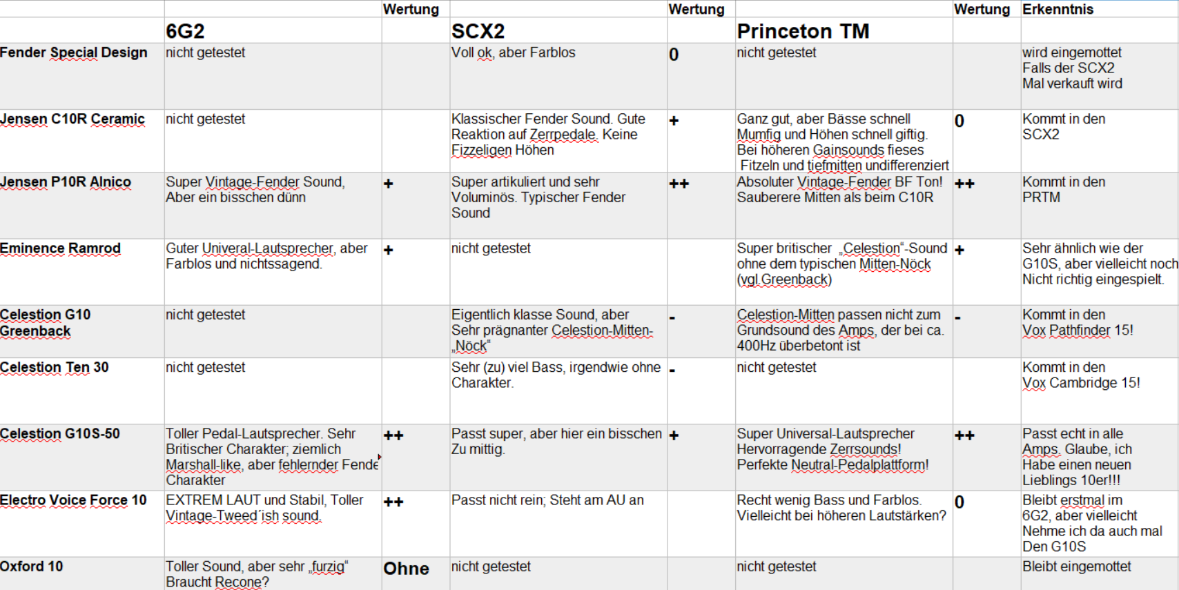 Der beste Speaker für den Cleankanal war er P10R, dicht gefolgt vom C10R. Der C10R reicht allemal und irgendwie finde ich im Kanal 2 (den ich eigentlich gar nicht nutze) den Keramischen ein bisschen stabiler