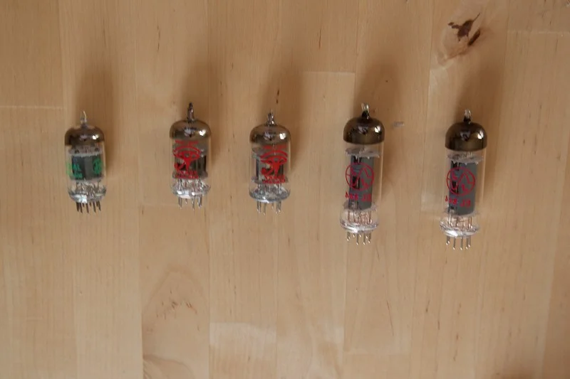 Weil im Amp wirklich gute alte Sylvania-Endröhren drin waren, die auch noch eine Emission hatten über die sich einige Neubauten freuen würden, habe ich zwei davon noch drinlassen können, zur Dritten hatte ich leider keine die zu ihr gepasst hat, dafür sind zwei auch recht alte RCAs reingekommen, mit dem Bias-Balace-Regler war der Unterschied gut auszugleichen, hat sogar noch Platz.