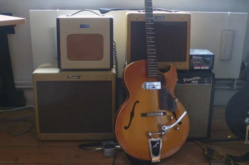 Ab und zu habe ich auch das Vergnügen über einen Silverface Amp aus den 70ern zu spielen (rechts)