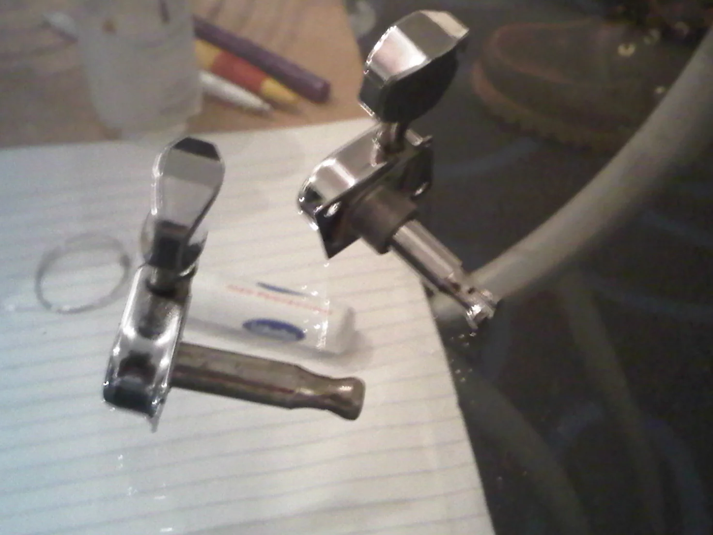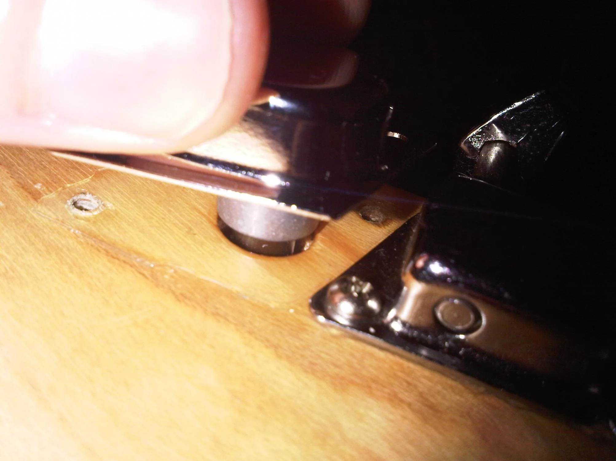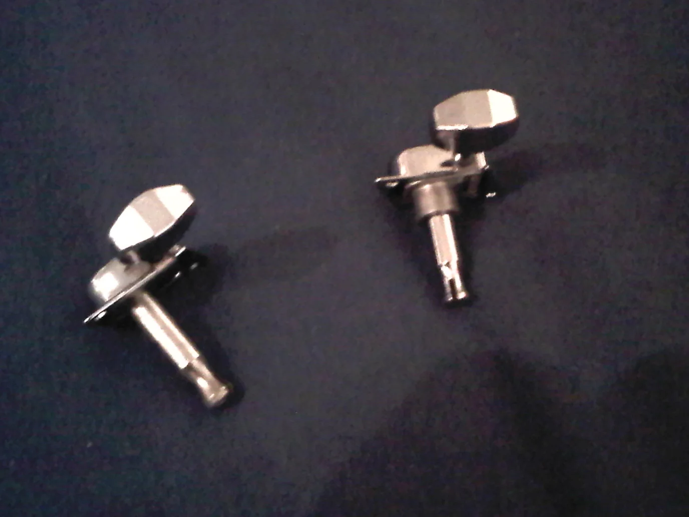 Leider tun sie dieses nicht. Es sind Tuner für eine 8 mm Bohrung. Es scheint, als hätte Fender hier damals andere Bohrungsdurchmesser verwendet. Denn die Mechaniken passen nur um haaresbreite nicht in die Bohrungen (Siehe letzten 3 Bilder Bilder).