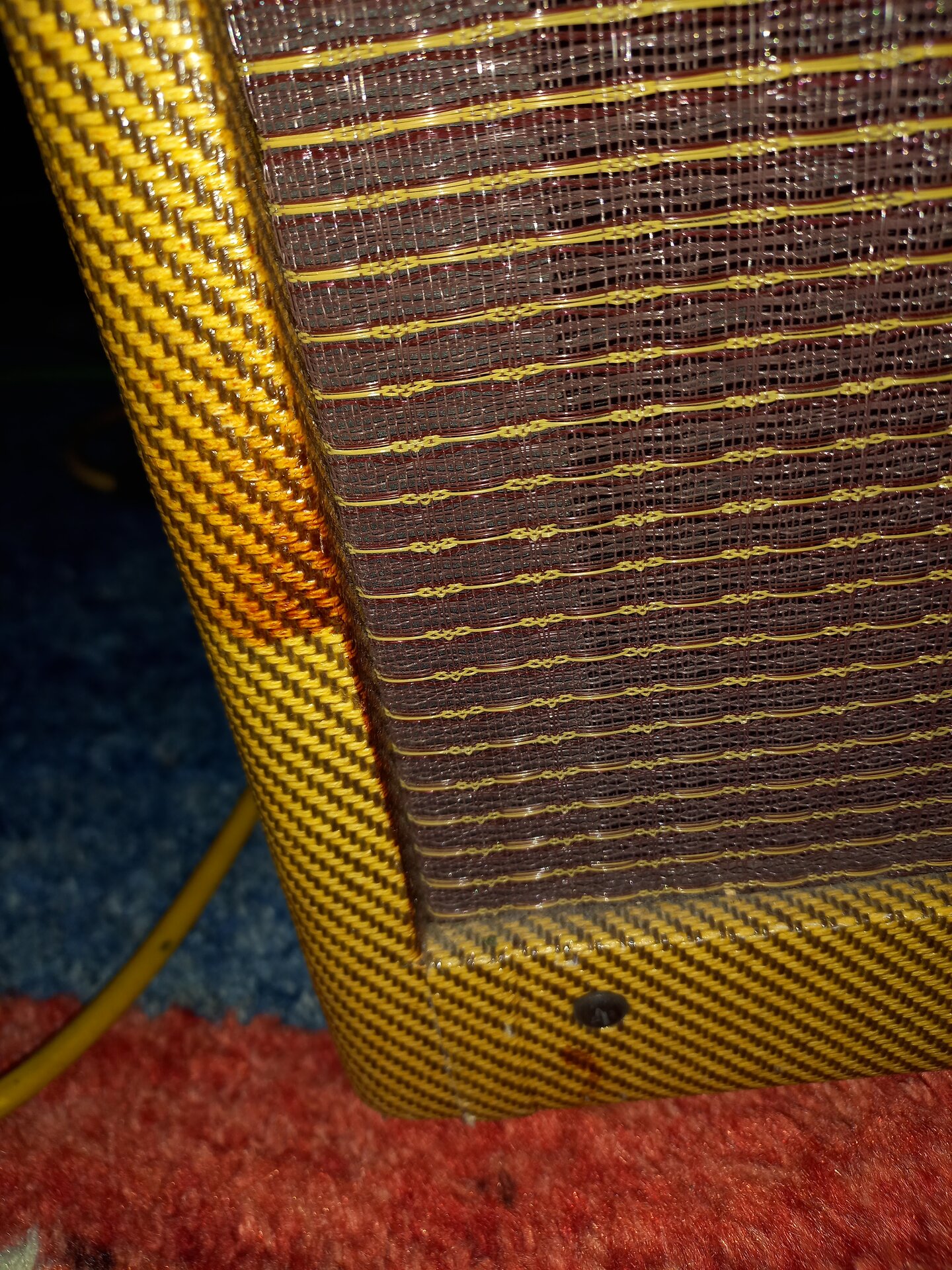 habe einen ca. 20 Jahre alten 5F1 Tweed Champ als Bausatz vom Tube Amp Doctor. Schon vor ein paar Jahren ist mir aufgefallen, dass auf dem lackierten Gehäuse rotbraune Flecken waren. Da ich ihn oft gespielt hatte dachte ich, dass da vielleicht mal irgendwas drübergeschüttet wurde, aber ich bekam die Farbe nicht weg. Als ich ihn jetzt wieder spielte sah ich, dass sich auf der anderen Seite auch solche Flecken gebildet haben. Das muss sich aber innerhalb drei Monaten gebildet haben, denn es ist mir vorher nicht aufgefallen.