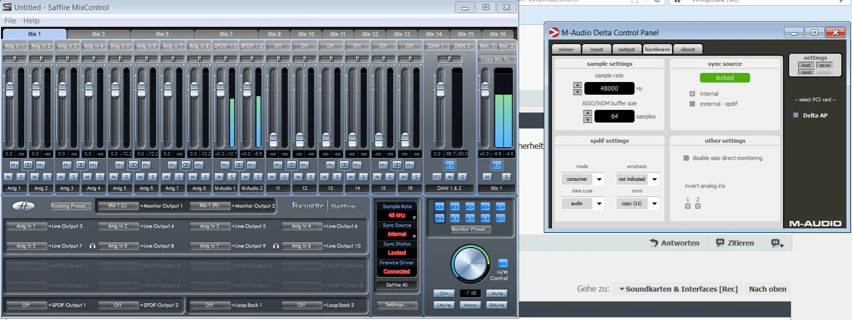 Allerdings hab ich noch die alte M-Audio Delta Audiophile 2496 PCI im Rechner.