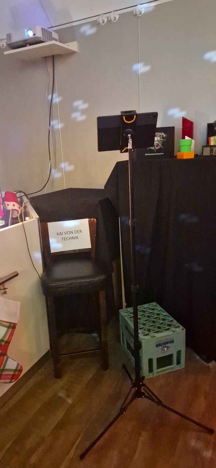 Da vor mir alle Gäste stehen und ich nicht besonders groß bin, hab ich mir einen leeren Kasten hingestellt, so das ich auch Augenkontakt mit der Band halten konnte.