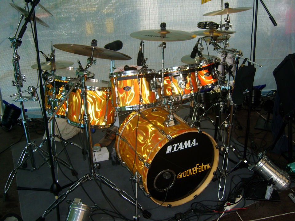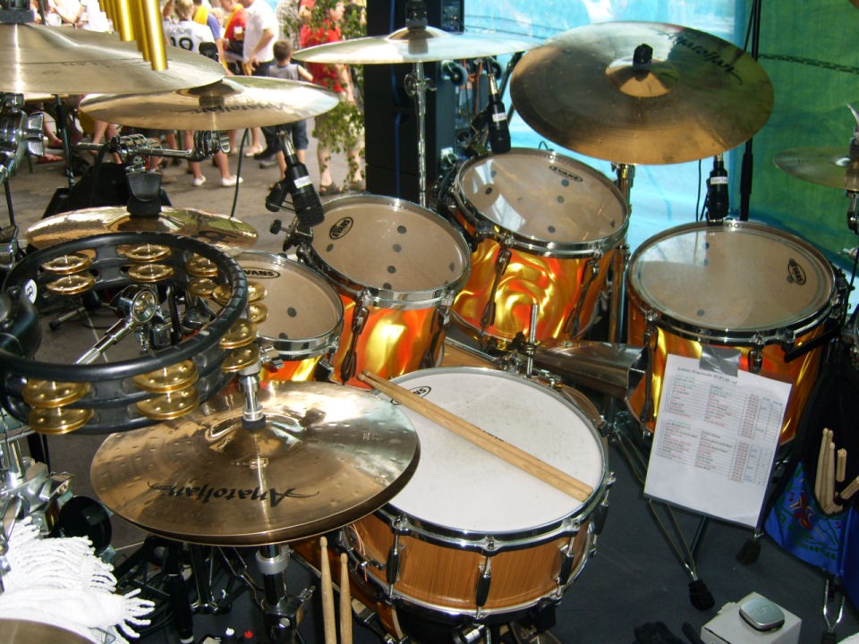 Sonor HLD-580 TR, JSD-10, Paiste 2002 Heavy Hi-Hat 14", Ride 22", Heavy Ride 20", China Type 20", Medium 20", Crash 18", 17", Color Sound 5 Heavy Hi-Hat 14", 505 Splash 12"