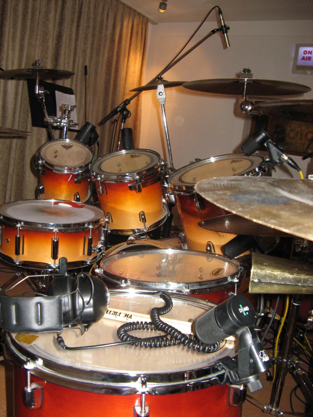 Sonor D 505, Force 3001 22" x 16", Remo RotoToms 14", 12"