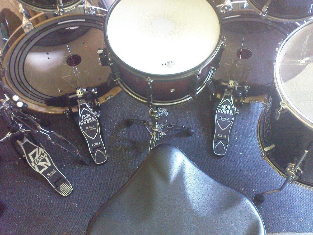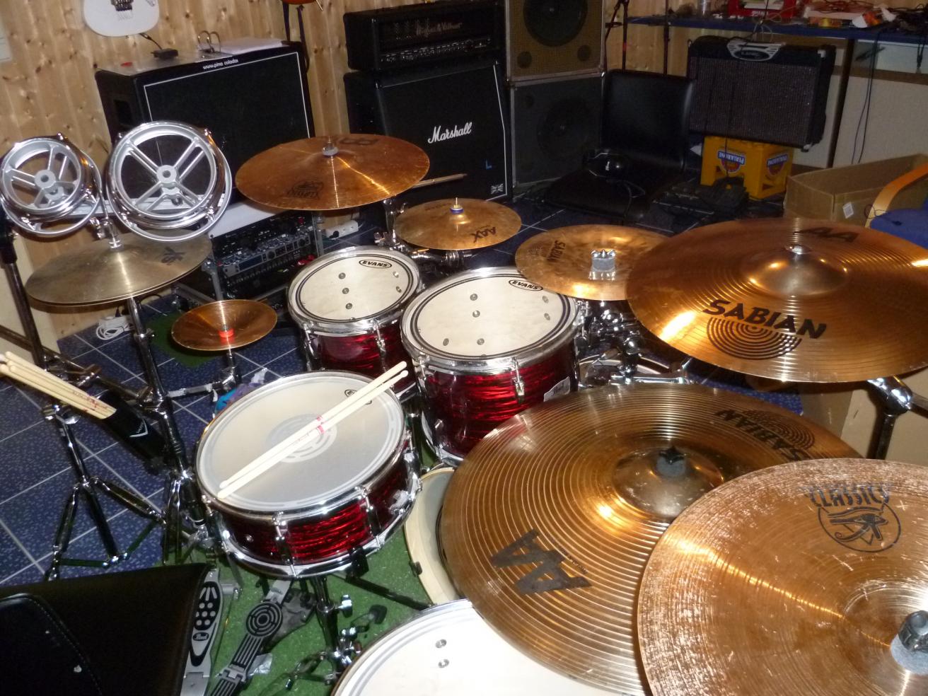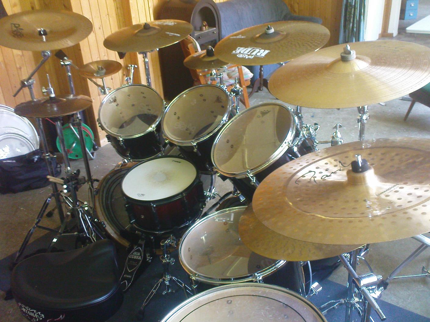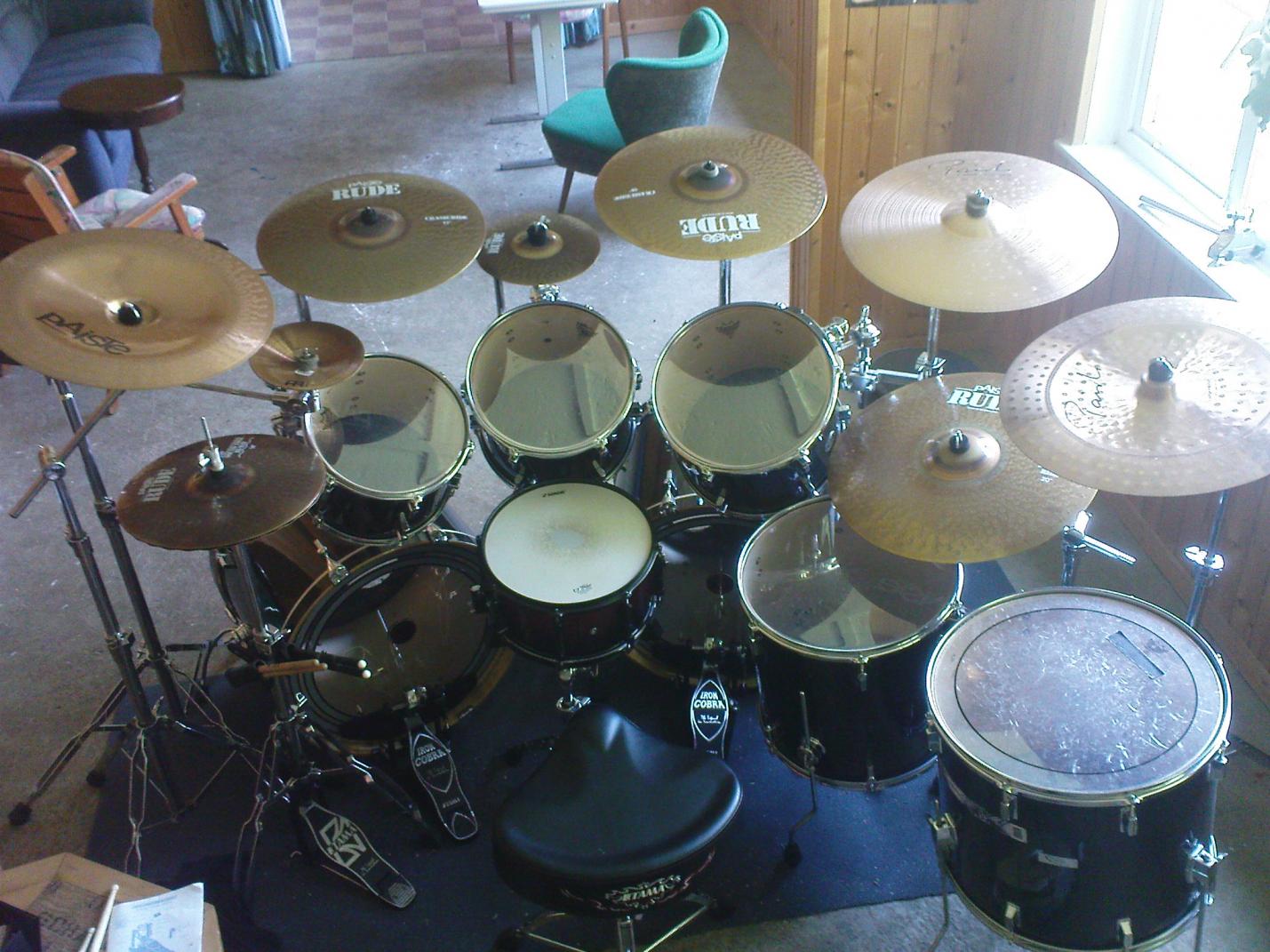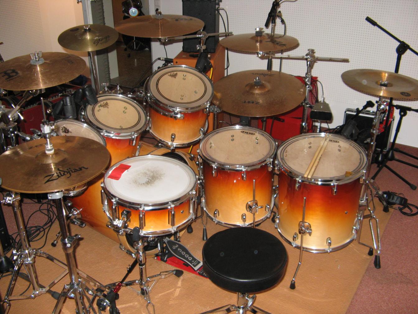 Sonor D 528, Pearl DLX 22" x 16", Sonor Hilite 16" x 16", 14" x 12", Tama Superstar 12" x 9",