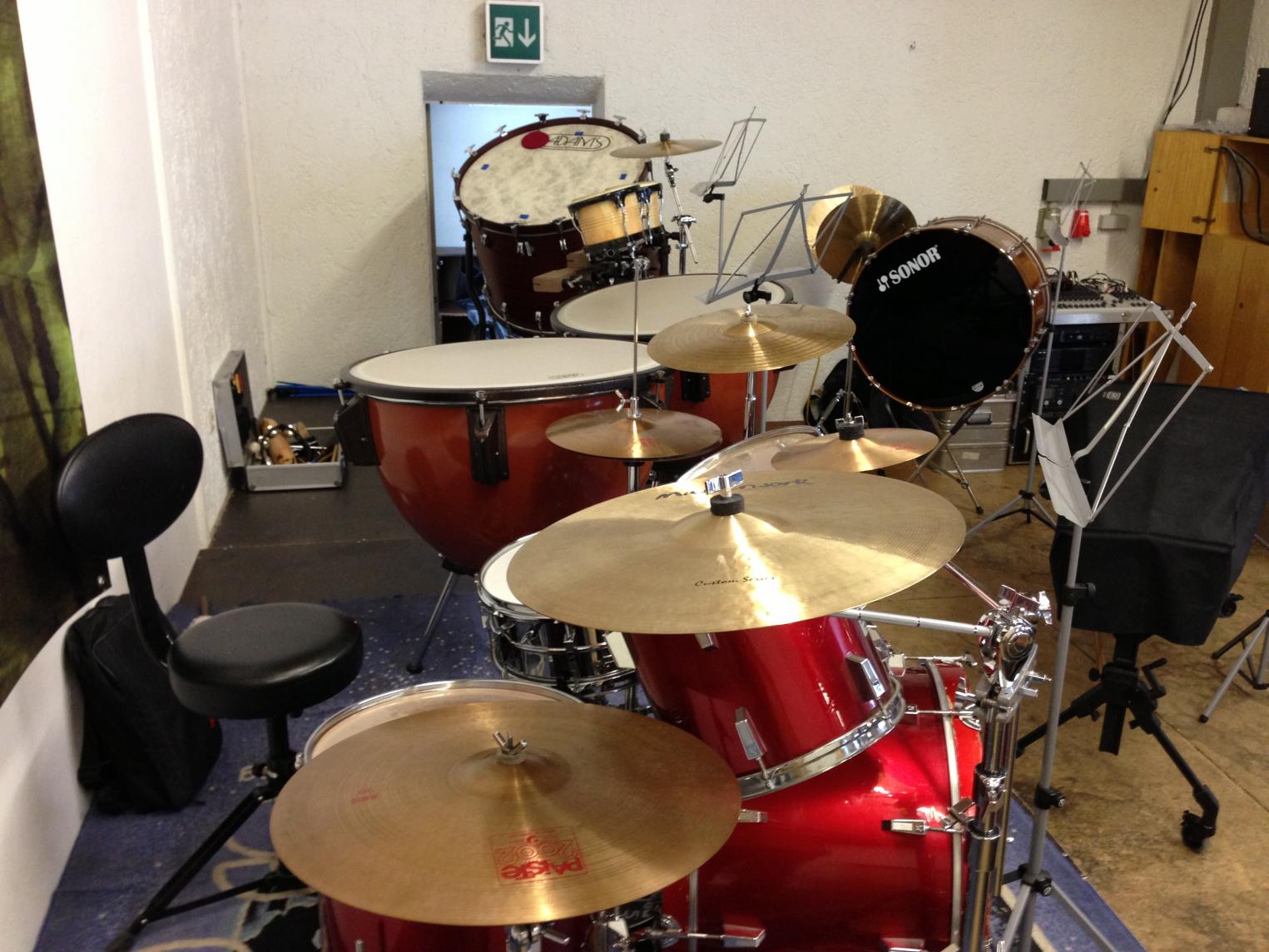 Hier mal ein aktuelles Foto aus dem Proberaum. Hab gerade die Toms neu befellt.
