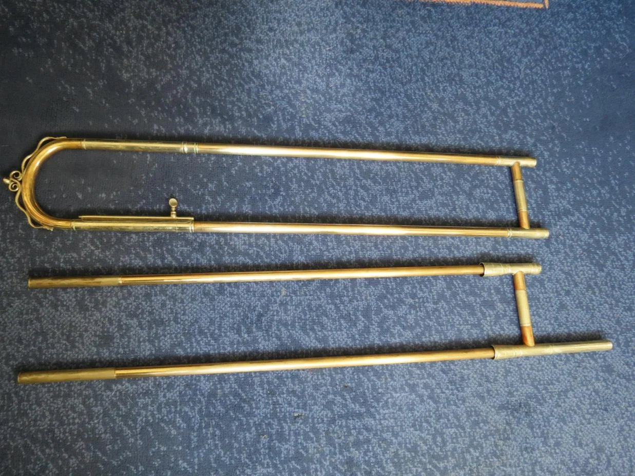Zu den Abmessungen wird es vermutlich keine Info mehr geben. Die Posaune wurde seinerzeit über eBay verkauft - ich wollte mitbieten,habe es dann aber leider doch verpasst...Wie sind die Abmessungen deiner Posaune? (z.B. Gesamtlänge, Zuglänge, Schallstückdurchmesser, Innenzugbohrung) Ich bin neugierig inwiefern die zu vergleichen sind.