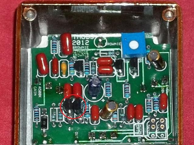 also,ich habe dem chad von cmatmods eine mail geschickt und prompt eine freundliche antwort bekommen, für alle unwissenden brownie besitzer wie mich, die zwei slots rechts unten dienen nur als halterung für die austausch transistoren und sind nicht aktiv im circuit!!! früher waren die ja nur an die inneseite des deckels geklebt..