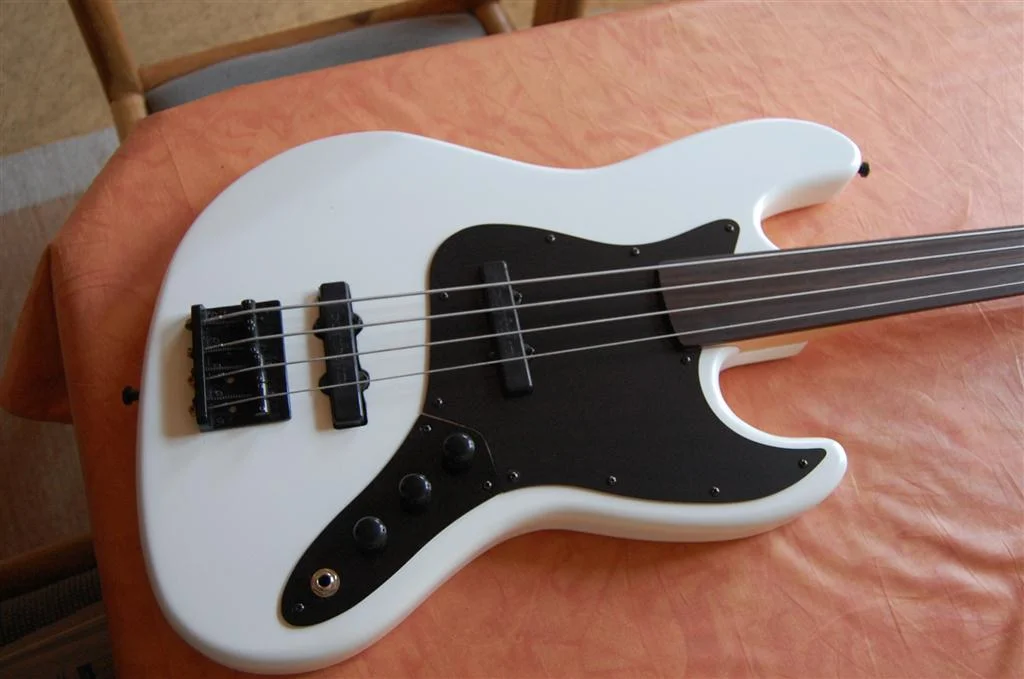 Ich entschied mich für einen Jazzbass, da mir einfach Aussehen, Form und die Tonabnehmerkonstellation liegt. Der angepeilte Preis sollte bei etwa 400€ liegen. Hals und Korpus wollte ich in Rohform vorgefertigt kaufen, da ich weder das Können noch die Werkzeuge zum Bearbeiten von Holz habe. Außerdem wollte ich sicherstellen, dass wenigstens einigermaßen etwas spielbares heraus kommt. Bundlos ist übrigens am einfachsten zu bauen, da man sich keine Sorgen über Bundreinheit und die Einstellung des Halses machen muss (Schnarren etc. fällt ja weg).