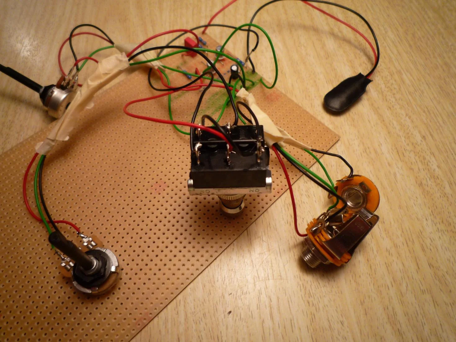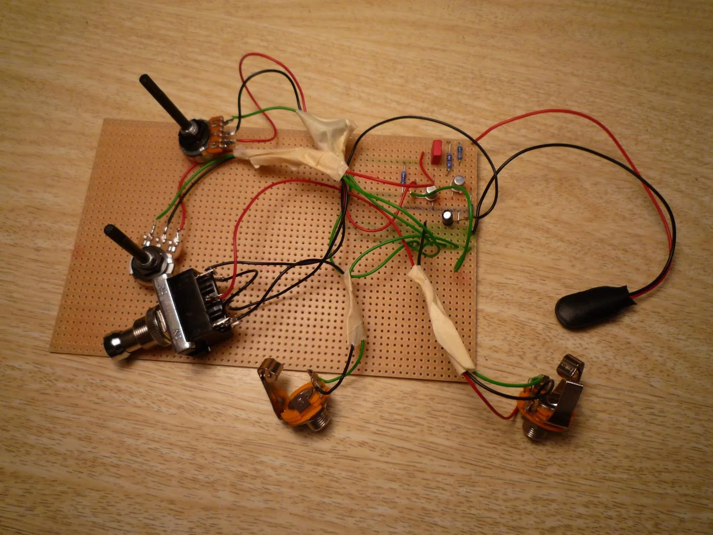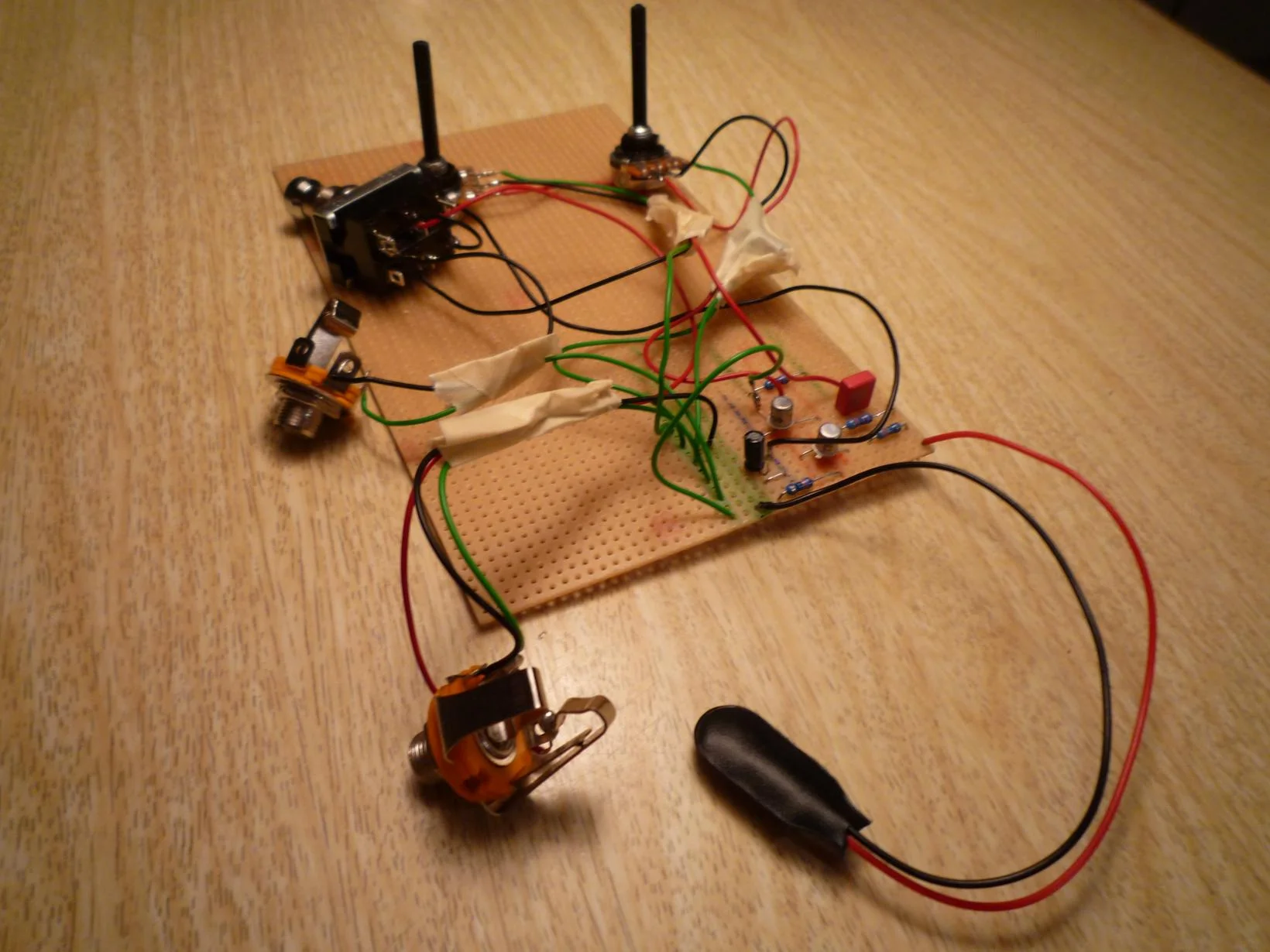 das pedal funktioniert soweit, dass bei einer schalterstellung kein signal von der gitarre durchkommt, also man hört nichts.🙁 bei der anderen, kommt das cleane gitarrensignal durch, jedoch kann man, von mir ungeplant, die lautstärke mit dem volumenregeler regeln. man kann am fuzzpoti soviel rumdrehen, wie man will aber es tut sich nichts.