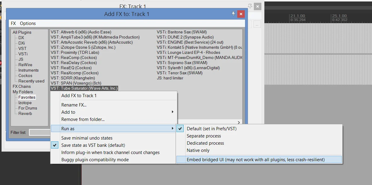 Wenn ich ins FX-Fenster Plugins lade, seien es Effekte oder Instrumente, werden - einzelne - Fenster geladen.