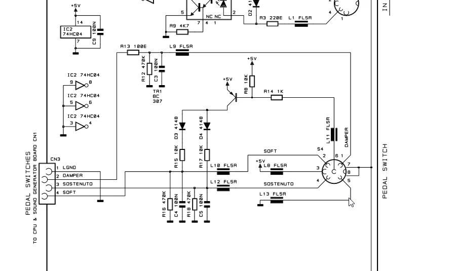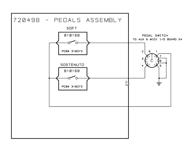 Im Internet fand ich sogar einen Schaltplan des RP1S (Anhang). Der brachte leider nicht unbedingt Klarheit. 1. War das Pedal nicht nach Plan verdrahtet und zweitens ist dort ein 8-Poliger Stecker eingetragen, wobei mein Piano nur 6 Pins besitzt.