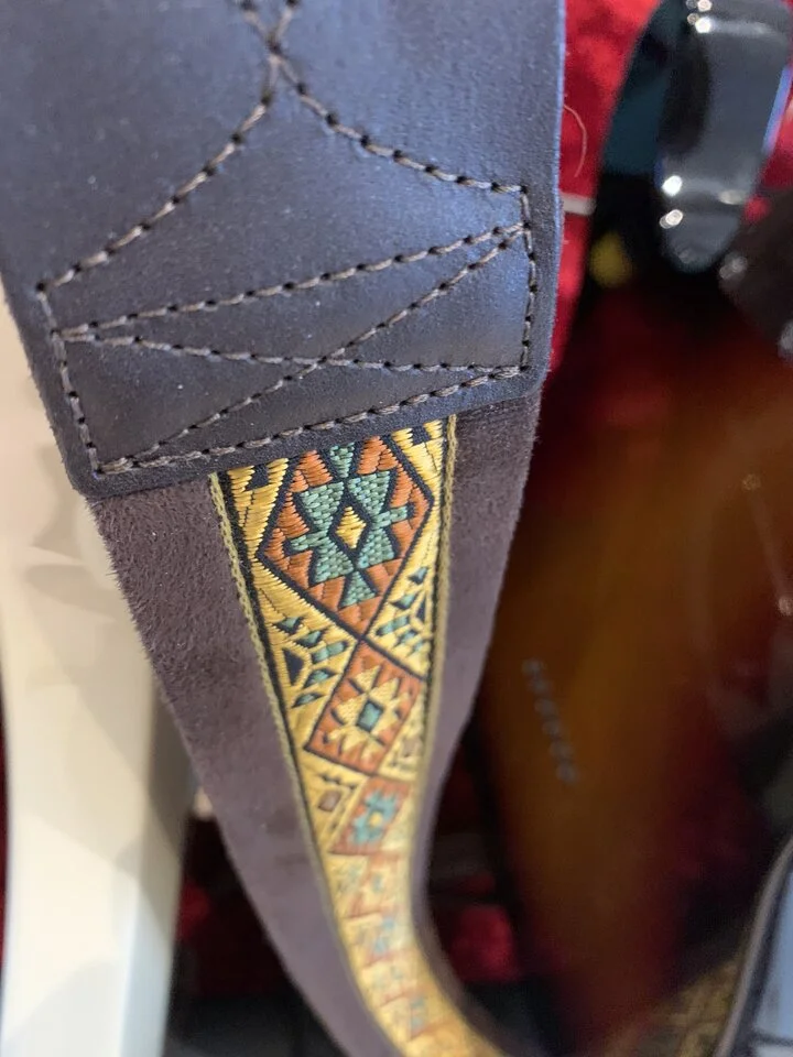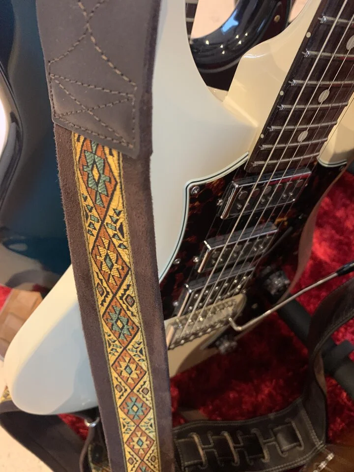 ich habe über die Jahre verschiedene Gurte gesammelt. Lange habe ich einen Ibanez Designer Strap gespielt, weil er ein bisschen stylischer ist als andere Gurte: