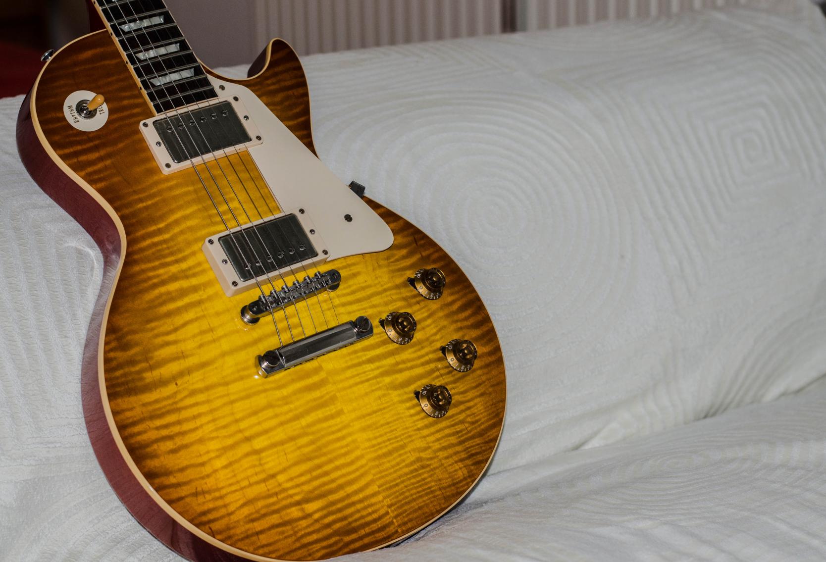 ich habe zwar nur eine Classic Goldtop aus den frühen 90ern, aber die feinen Risse [nicht künstlich herbeigeführt] verlaufen alle horizontal, nicht 100%ig, aber bestimmt 95% horizontal.Jedoch muss auch ich sagen, ich habe mir jetzt diverse Bilder, diverser Les Paul's aus den 50ern angeguckt und ich finde nicht eine einzige die das "Weather Checking" horizontal hat!