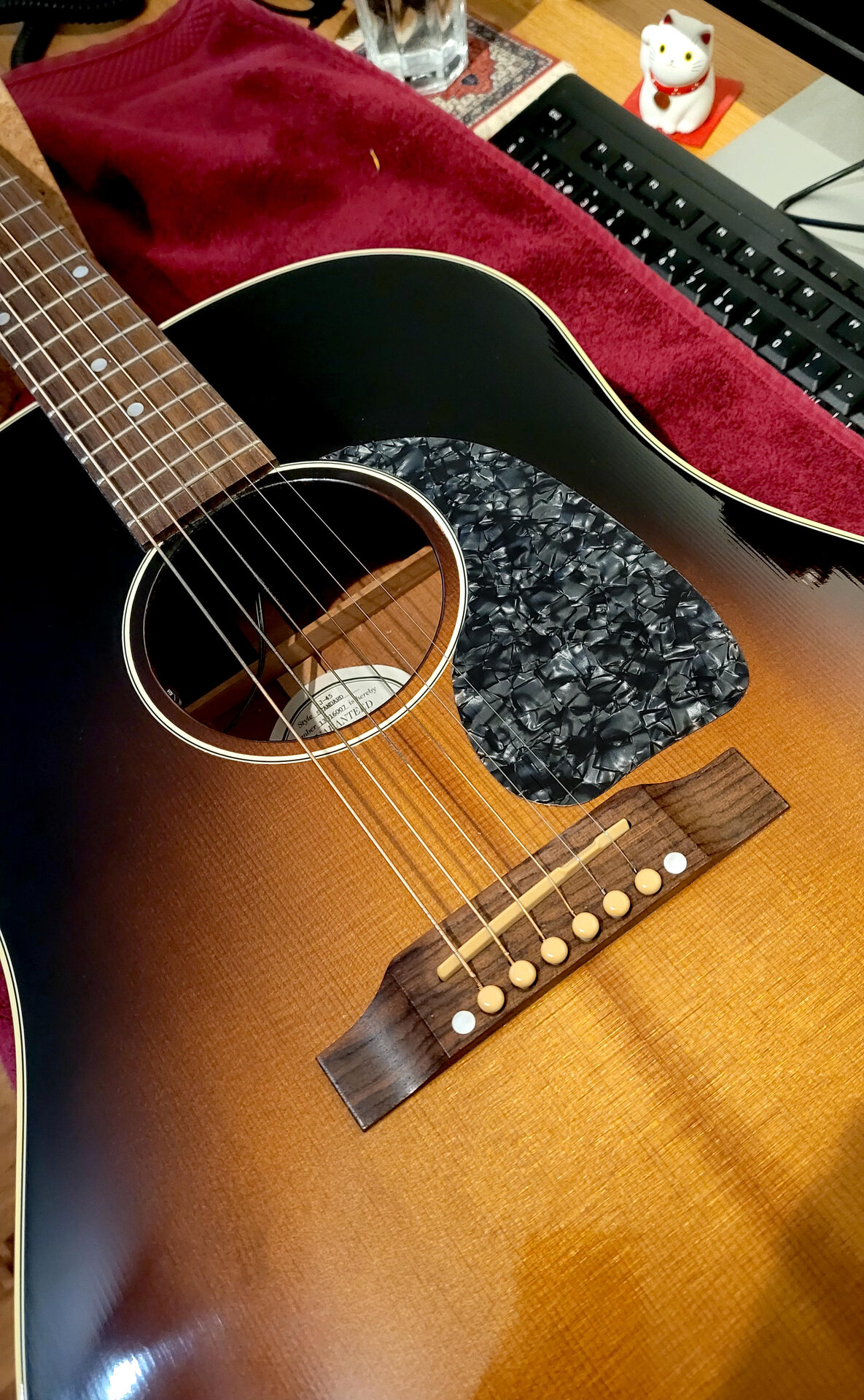 Bei meiner 7 Jahre alten Gibson J-45 wellt sich das Pickguard, was mich bei dieser nicht ganz günstigen Gitarre etwas überrascht und ärgert. Anyway...
