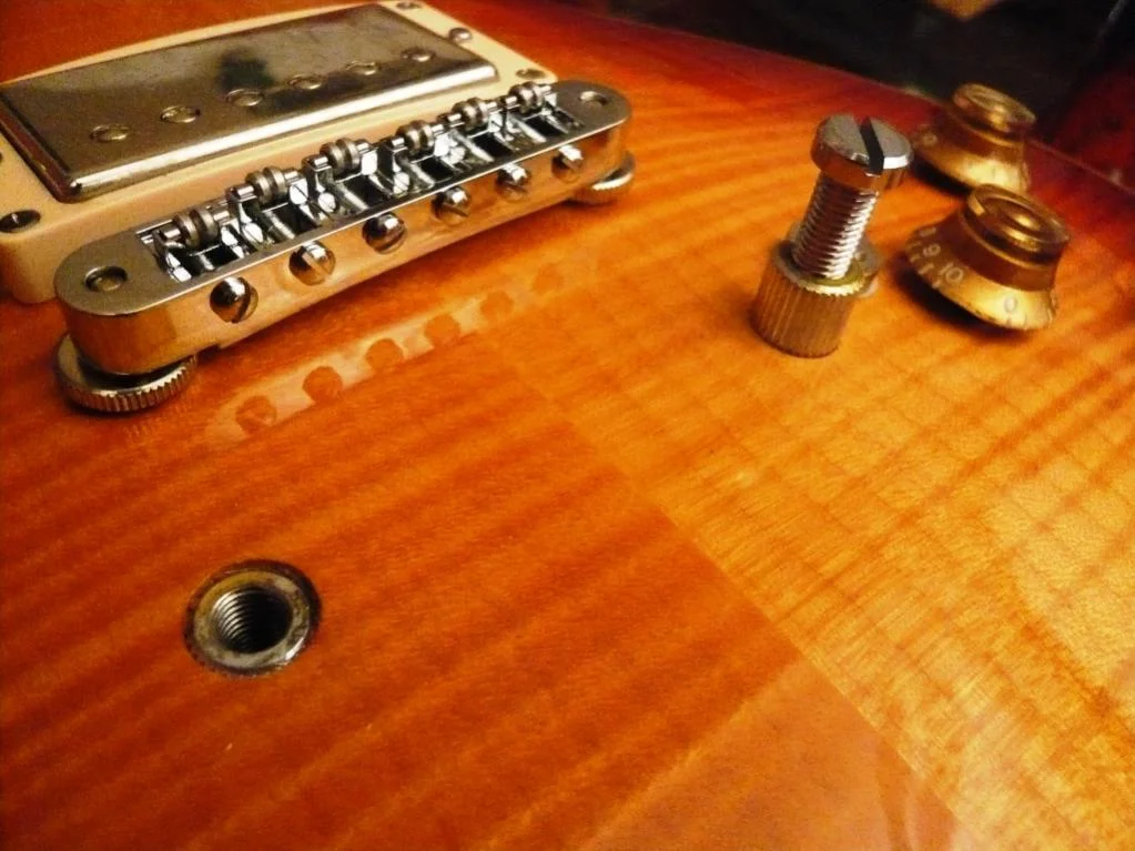 ich habe folgendes Problem, gerade hat es mir bei meiner Gibson Les Paul Standard Premium Plus Baufahr 2004 beim Tremolieren die von oben gesehen untere der beiden Gewindehülsen rausgezogen worden, wo normalerweiße das Stoptail dranhängt, bei mir eben das Tremolo. Sehe ich das richtig, dass die normalerweiße in ein zu kleines Loch geschlagen werden und einfach durch den Druck sich selbst fixieren? Logischerweiße sitzt meine jetzt natürlich nicht mehr so straff.... 😡. Naja eigentlich garnichtmehr, ich kann sie mit den Fingern ohne jegliche Gewalt ganz reinschieben und auch wieder rausziehen. Frage ist, was jetzt? Einfach versuchen einzuleimen? Aber Stahl auf Holz mit Leim, naja ich weiß ja nicht 😕. Oder ein Stück Holz einleimen und neu bohren? Was meint ihr? Das sind alles reine Mutmaßungen, ich hab leider nicht wirklich Ahnung wie ich das am Besten löse.