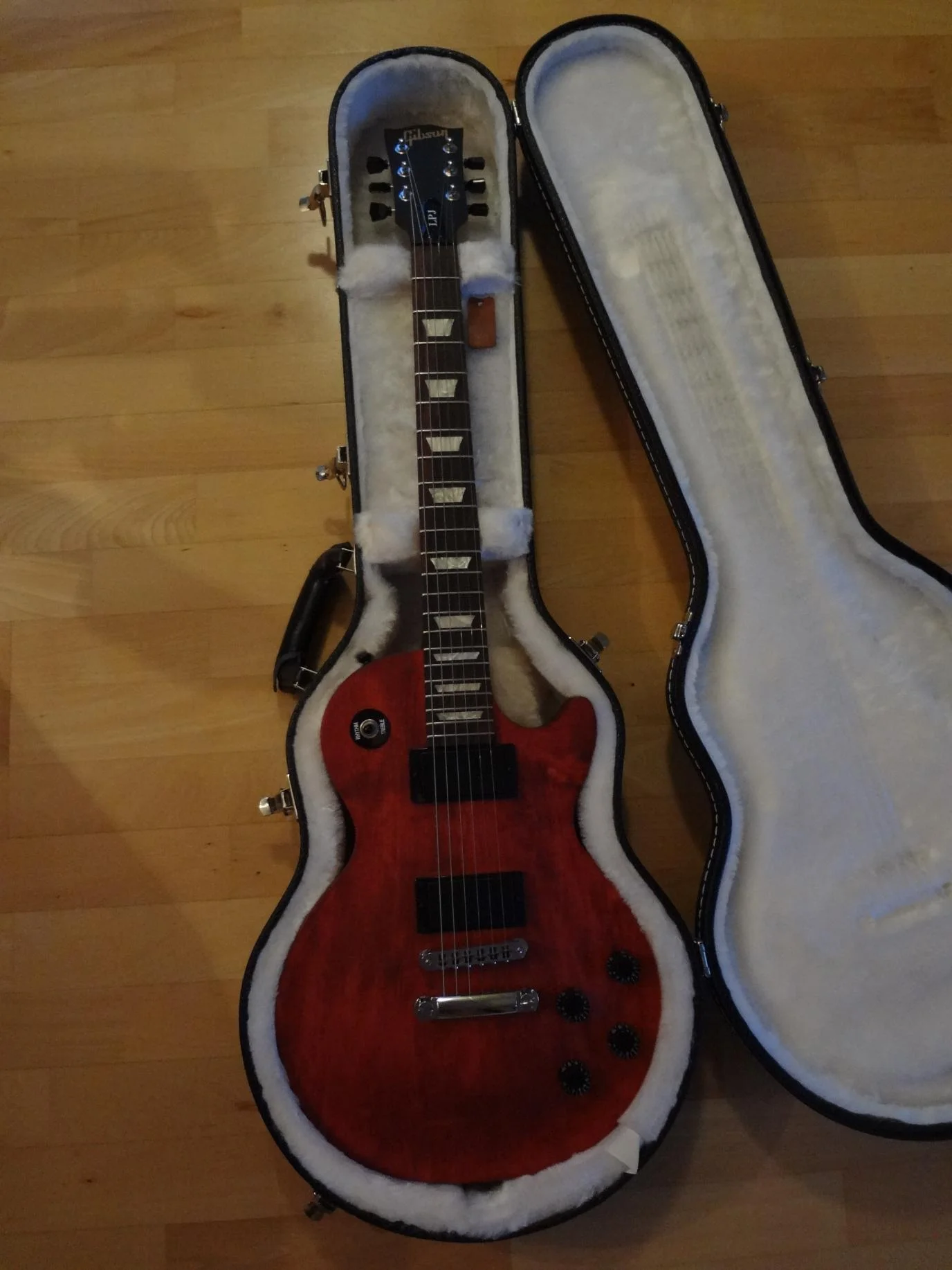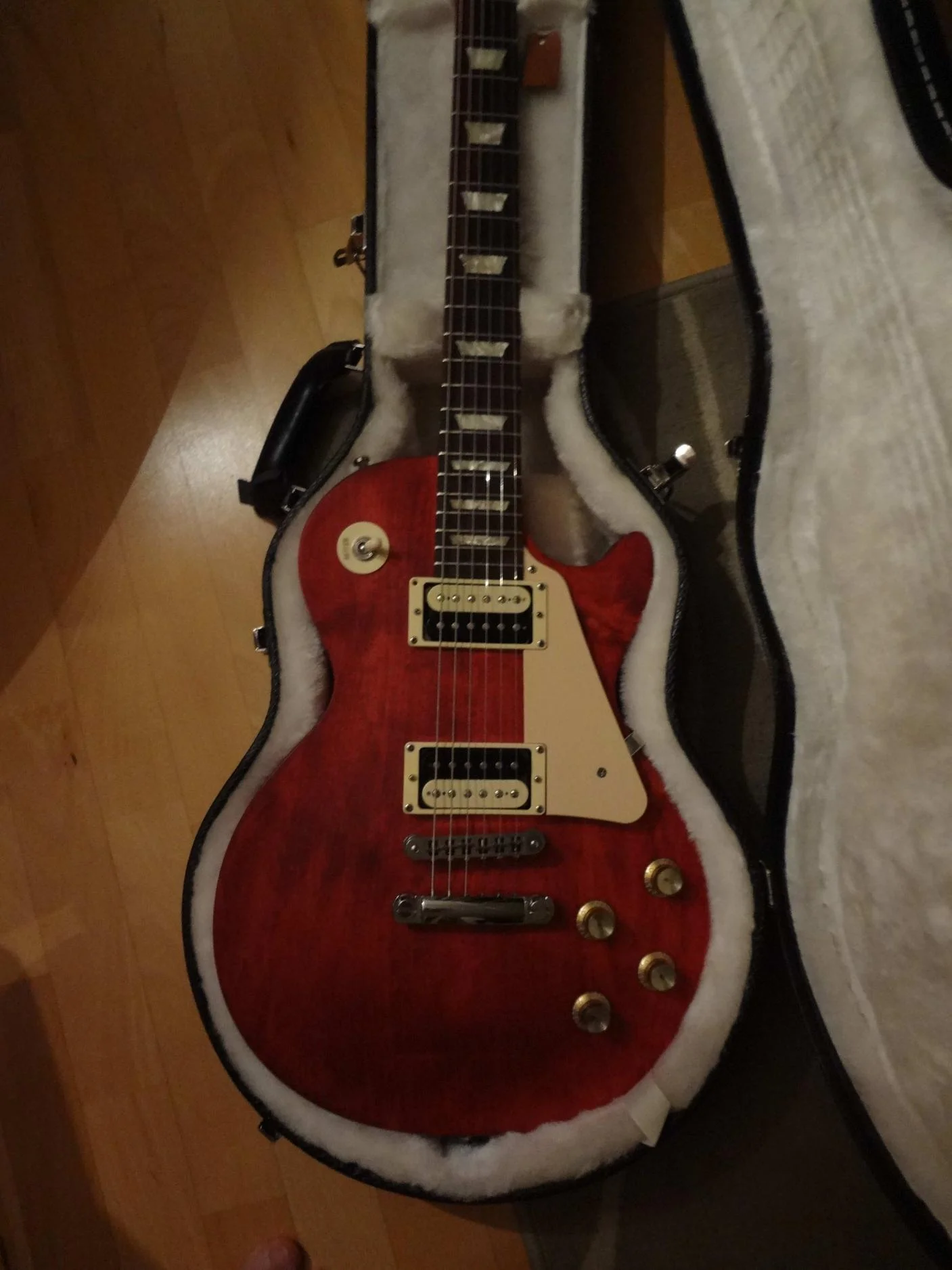 Verarbeitungstechnisch ist sie auch gut, keine Gefahr der Farbabblätterung wie bei meiner Studio. Das Einzige, was wirklich nervt, ist die Truss Rod Abdeckung mit dem riesigen leuchtenden LPJ drauf. Naja, wer leere Covers für 10 EUR verkauft, hat wohl Interese daran, die die dabei sind möglichst hässlich zu machen 🙂
