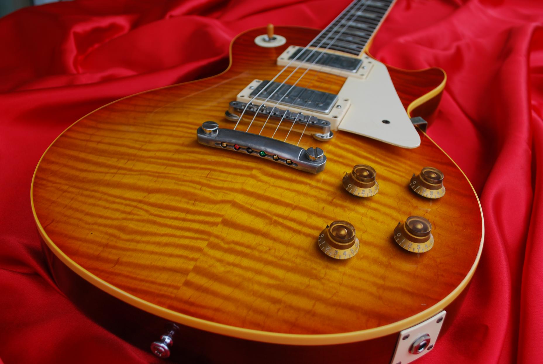 Ist mir bewusst, dass die 335er eigentlich nicht hier hin gehört. Sie ist nur etwa 9 Jahre jünger als die 60iger, deshalb habe ich sie auch noch dazugetan. Die Patina, welche über die Jahre entstanden sind, ist wirklich schön. da ist nichts Murphy drin. Habe nichts gegen aging. Nur sollte das Instrument trotzdem noch gespielt werden. Die unterbewertetsten Paulas sind aber definitiv die Deluxe aus den 70igern. Nicht alles aus dieser Zeit war schlecht. Meine ersten 4 Jahre als Working Man absolvierte ich in der Instrumentenabteilung eines Musikhauses von 1976-1980. Meine erste Original Paula war eine Les Paul Custom Twentieth Annyversary von 1974. Sie ist in etwa ähnlich, meiner jetzigen Custom in Vintage Sunburst, welche ich Euch gezeigt habe. Nur: die 1991er Les Paul Custom ist um Welten besser. Nicht nur optisch, nein, auch soundmässig überzeugt sie mit ihren 490R und 498T Humbucker. Lange Zeit meine Lieblingsbestückung. Nun, seit ich Wolfetone Humbucker kenne und spiele, die Dr. Vintage, die Legends und die Caretaker möchte ich nicht mehr zu den Burstbucker zurück. Wobei die Burstbucker mit der originalen Gibson Schaltung nicht schlecht funktionieren. Bei den Wölfen ist aber 50ties Wiring und Paper Oil caps angesagt.