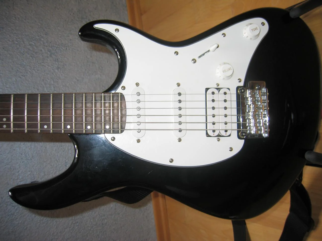 Später hab ich sie mal rundum eingestellt, das war ca. vor einem halben jahr. seitdem liegt sie (zu meinem erstaunen) wunderbar in der hand und spielt sich fast wie meine Blade R-3 (die ablösung für meine cort). trotzdem spiele ich sie nie, weil sie mir nicht gefällt. Damals fand ich sie mal ziemlich geil. schwarz-weiß eben.
