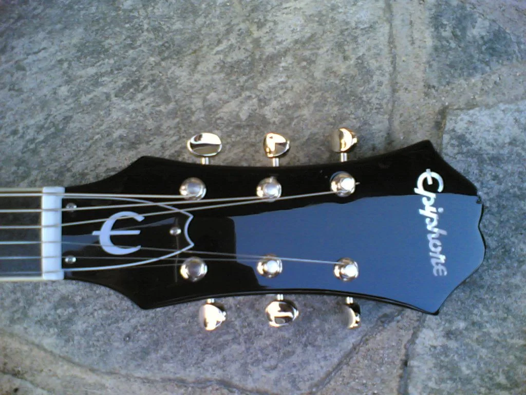 Im Gegensatz zu den anderen Epiphones (Dot, Riviera, Sheraton) hat diese Gitarre keinen Sustainblock, ist also vollkommen hohl und der Hals geht früher in den Korpus über.