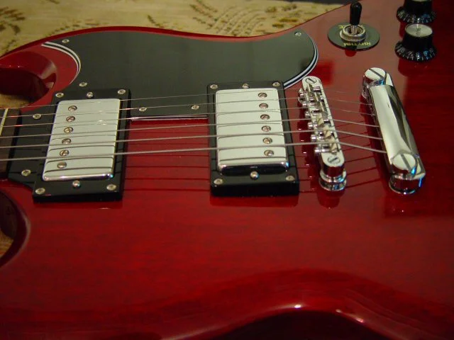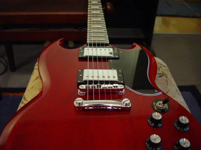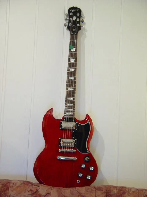In die engere Wahl hatte ich da schonmal die Ibanez ARC-300 und die Epi-Standard geschlossen, als meine Frau (ja die kommt wirklich mit) mir auf einmal die SG in die Hand drückte und meinte:"Die sieht doch mal geil aus oder?"