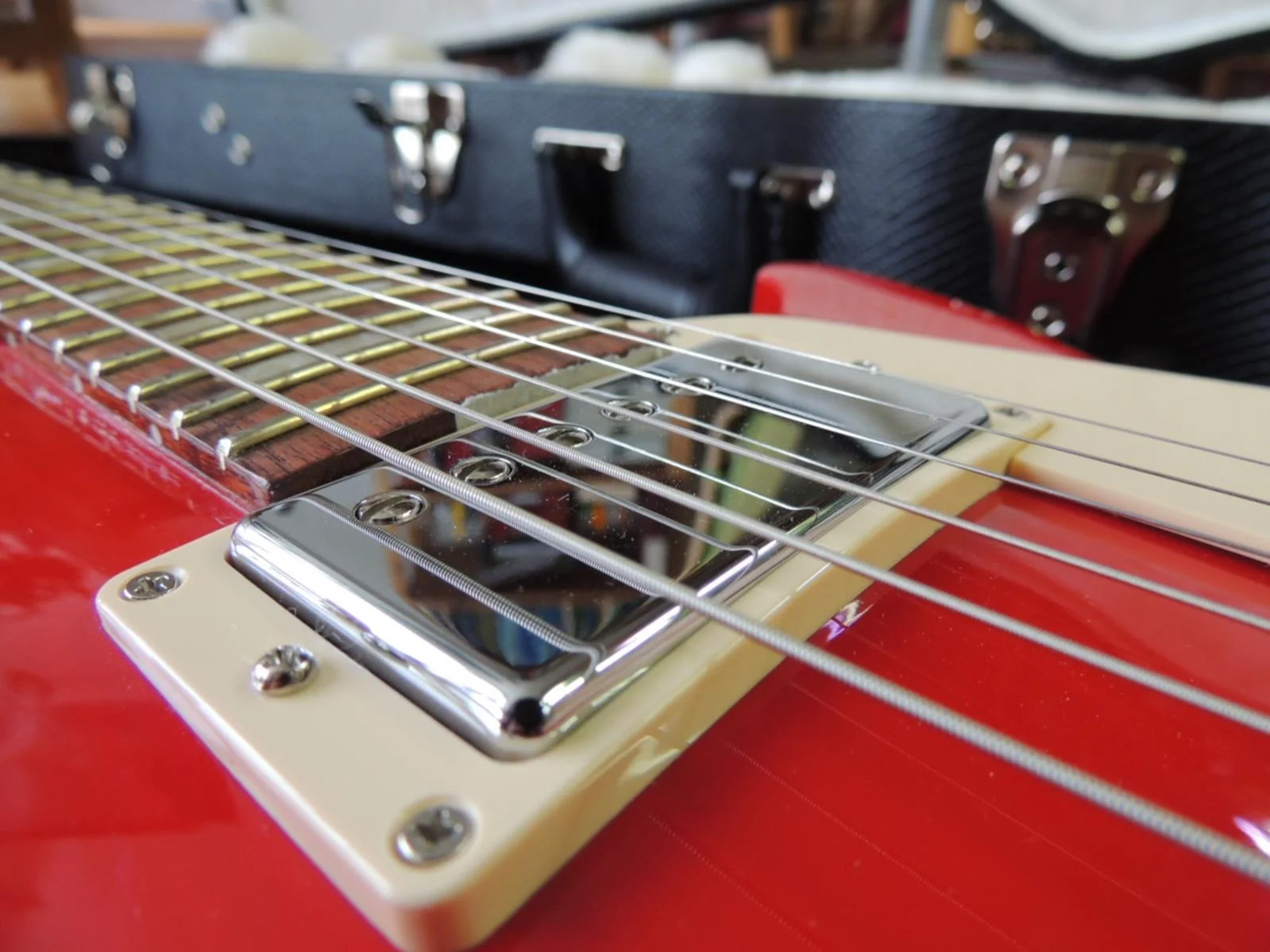 Also musste ich erneut eine neue Gitarre aussuchen. (War aber im Nachhinein auch ganz froh, jetzt doch wieder bei Rot zu landen. Rote Gitarren passen irgendwie zu mir.)