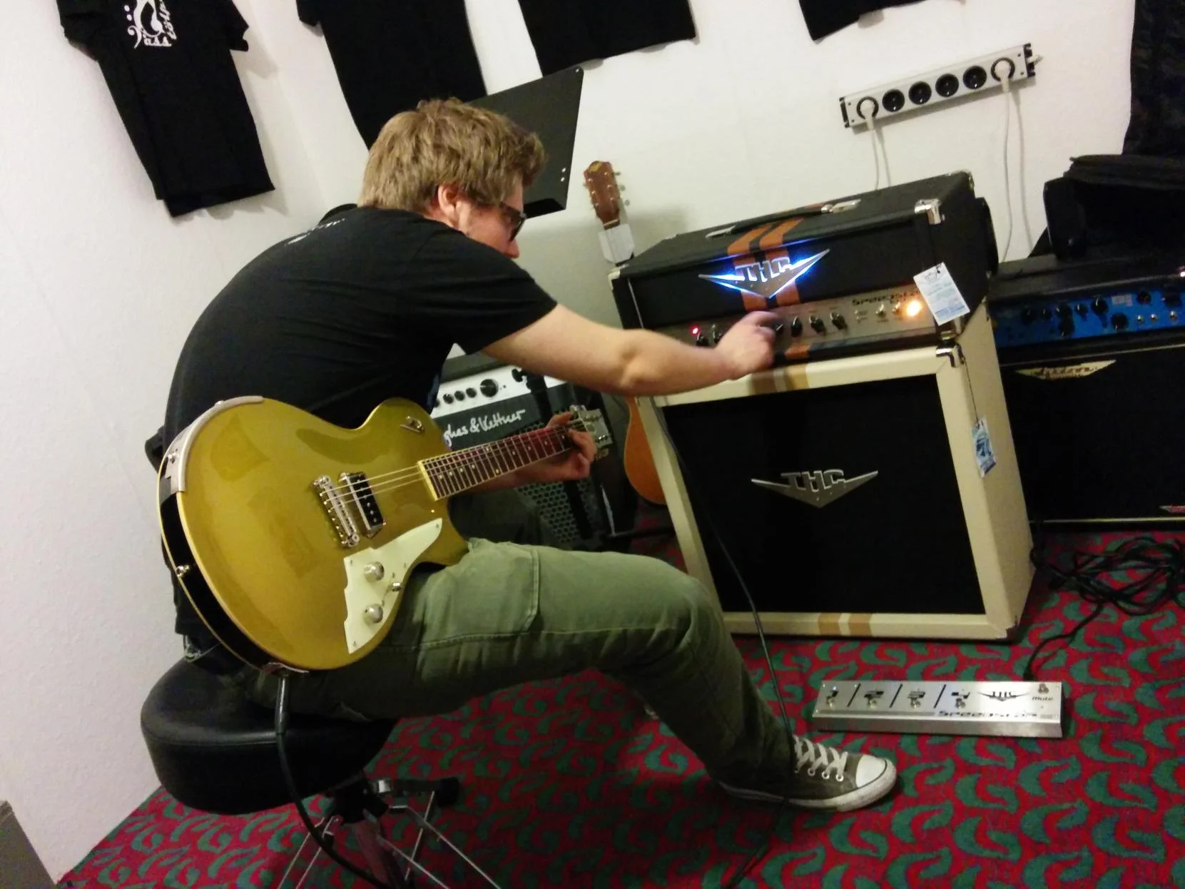 Lässige alte Tür Gitarren!in der Ameisgasse oder so ähnlich ist seine Werkstatt, und Gitaren die er baut sehen etwas untypisch aus, so aus wie dieses gute Stück hier das ich von ihm gekauft habe: