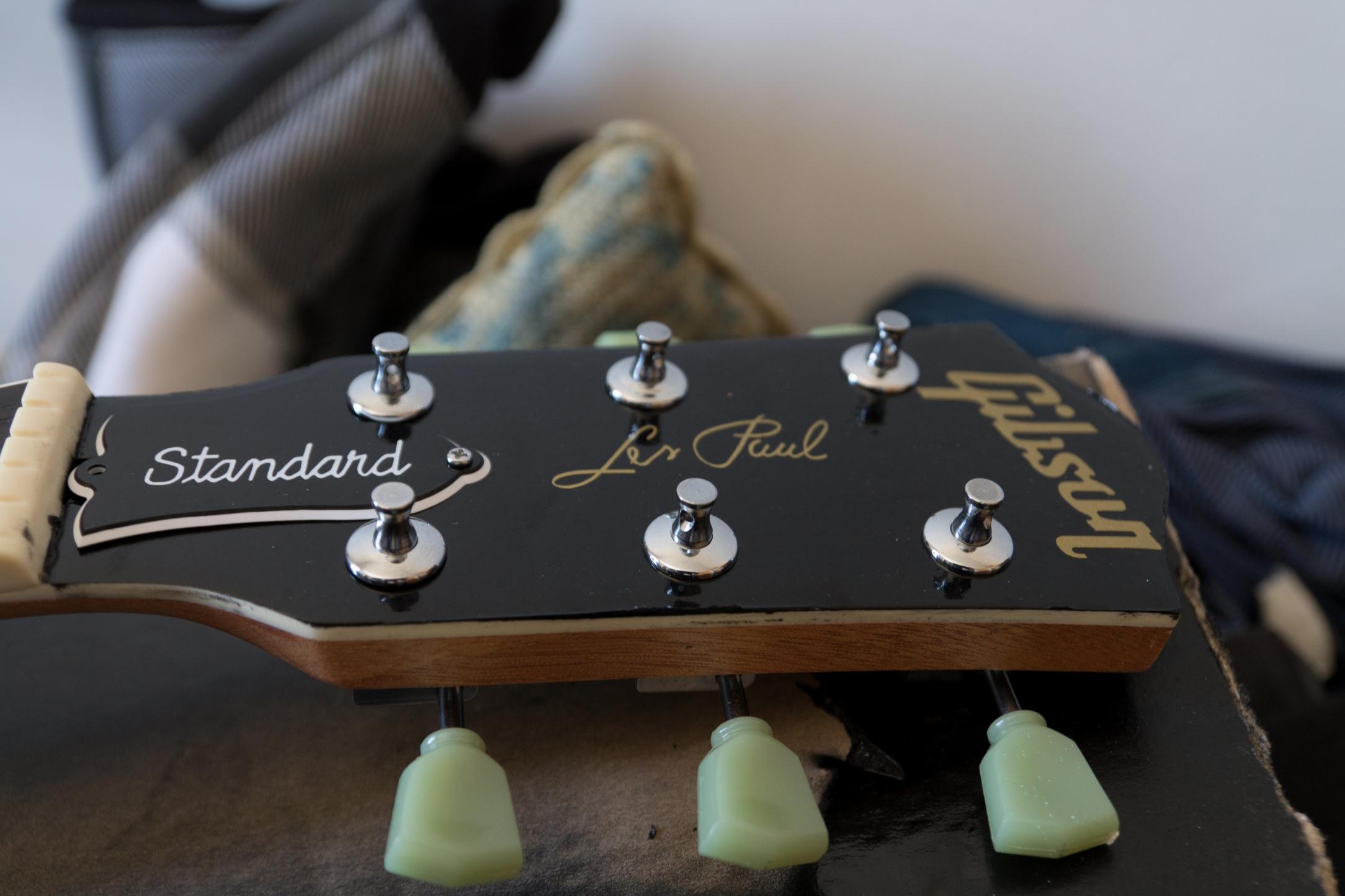 Die kopfplatte ist natürlich nur angelehnt an eine "echte" Gibson, die form ist schon etwas anders, ich habe aber nichts verändert, sie war so im bausatz. Wollte erst etwas anderes draufkleben aber irgendwie hat mich dann doch das gibson logo überzeugt und so passt sie auch besser zu meinen anderen Les Paul ;)