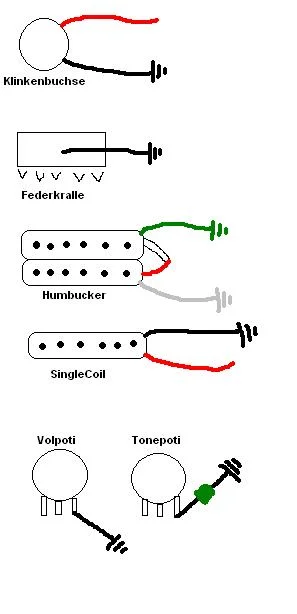 Dein HB hat eine Masse. Ich selbst habe keinen 3-adrigen PU. Aber es gibt hier eine Menge Leute, die dir genau sagen können, werlches Kabel wofür steht.