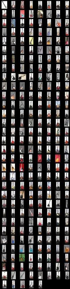 Also hab ich eine Vorauswahl getroffen. Die Klassiker Strat und Les Paul müssen sein. Eine Jazzgitarre ist auch Pflicht. Und dann noch wegen des spektakulären Aussehens eine Doubleneck und eine V!