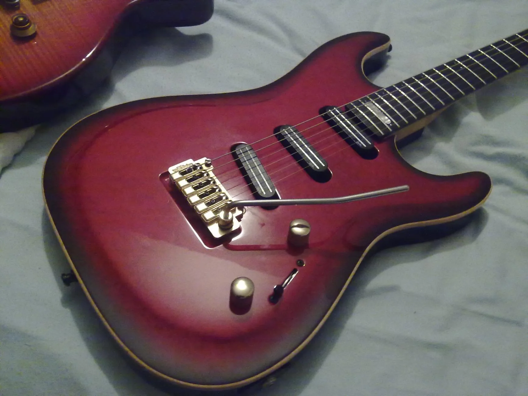 Sie ist mit EMG 81 + 85 und einem Lizenz-Floyd Rose bestückt.