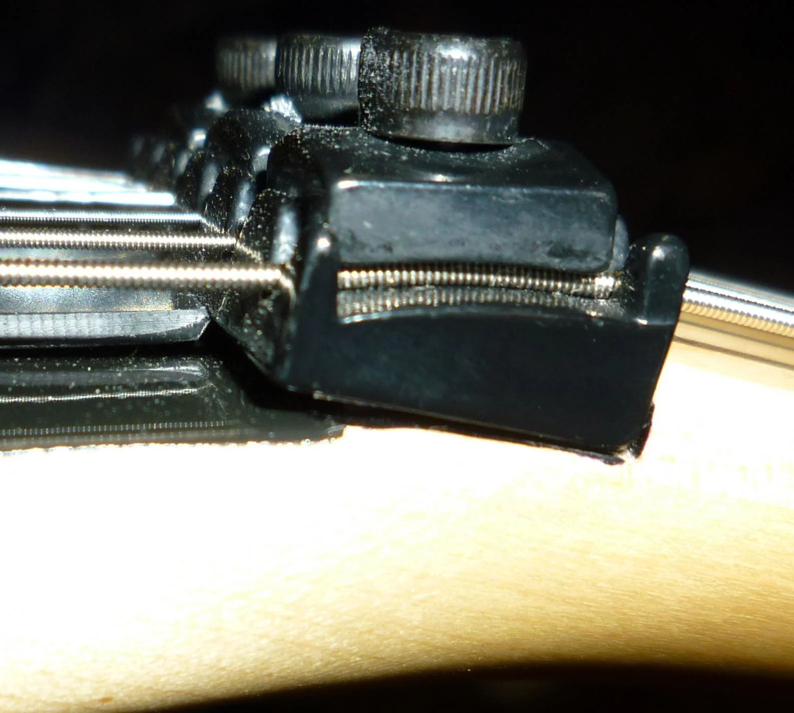 Eine Saite war nicht richtig festgeklemmt und nach Einstellung auf eine brauchbare Saitenlage hatten zwei Saiten einen Sitareffekt, der auch mit neuen Saiten nicht wegzubekommen war.