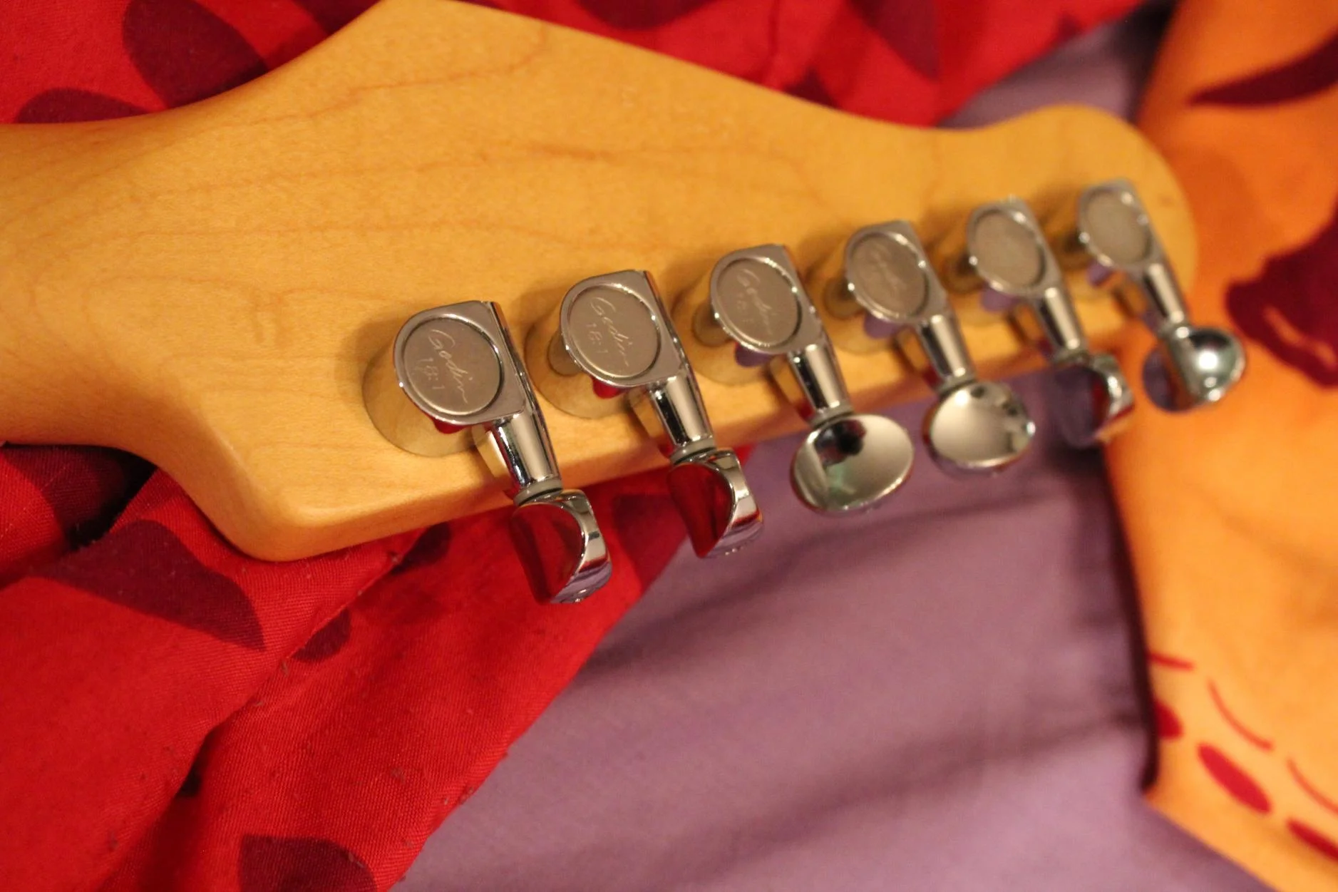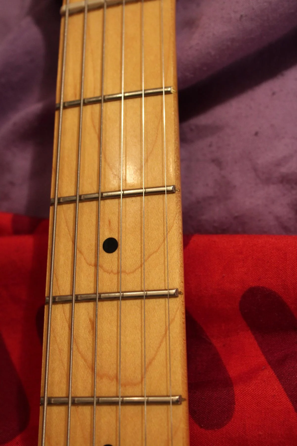 Nun ist aber fast alles wieder einsA. Jedoch muss ich die Rollen des Tremolos noch mal richtig einölen / WD40-en, da die sich nicht mehr alle drehen vor lauter Peks. Sehr angenehm ist auch die verbesserte Verarbeitungsqualität (vor allem Lackierung) zu den Anfang 90er Artisans.