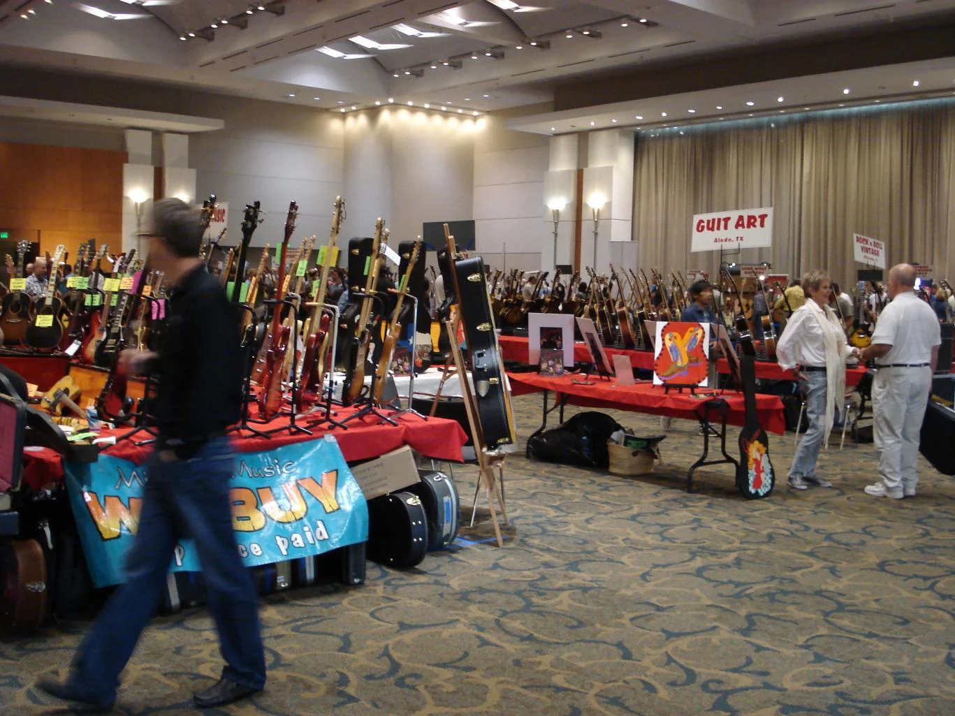 Hier sind mal ein paar Bilder, leider sind die meisten nicht gut geworden, aber so habt ihr mal einen kleinen Einblick in eine Gitarren Messe in den USA.