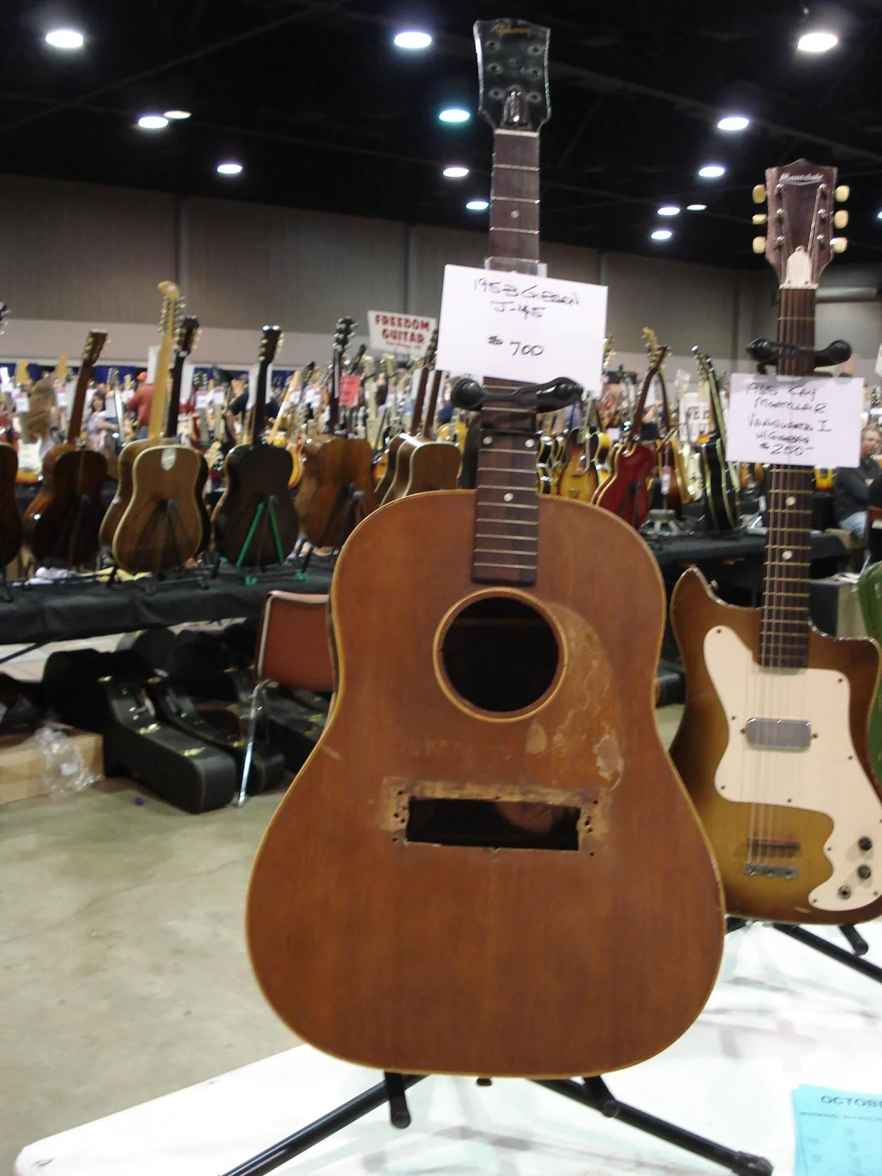 -Eine Gibson Akustik Gitarre von 1958, wo nur noch das Holz da ist, also Rohform für 700$.
